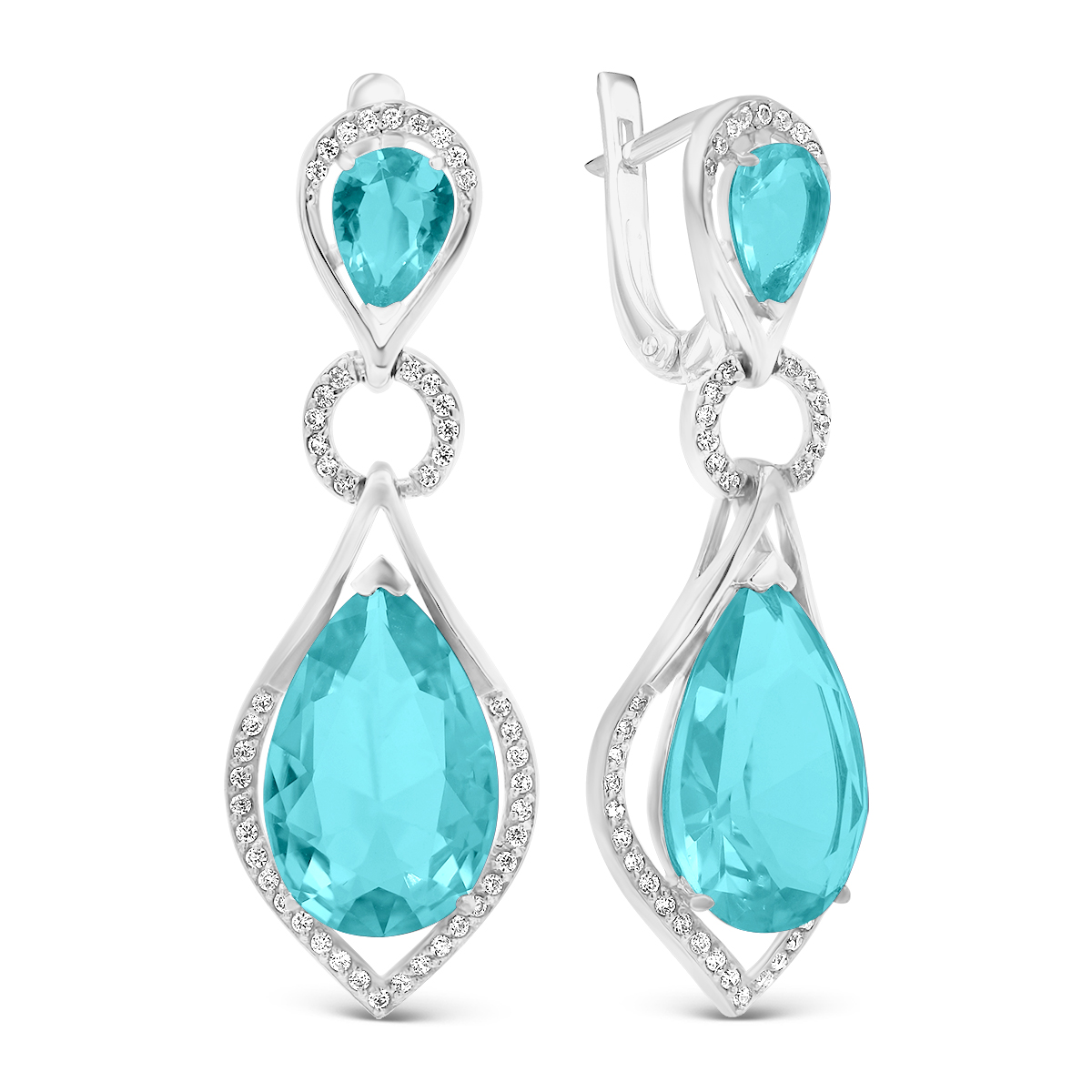 Серьги из серебра пл. кварцем цв. топаз и фианитами родированные