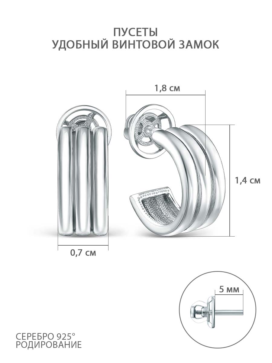 Серьги-пусеты из серебра родированные 925 пробы С-2486р