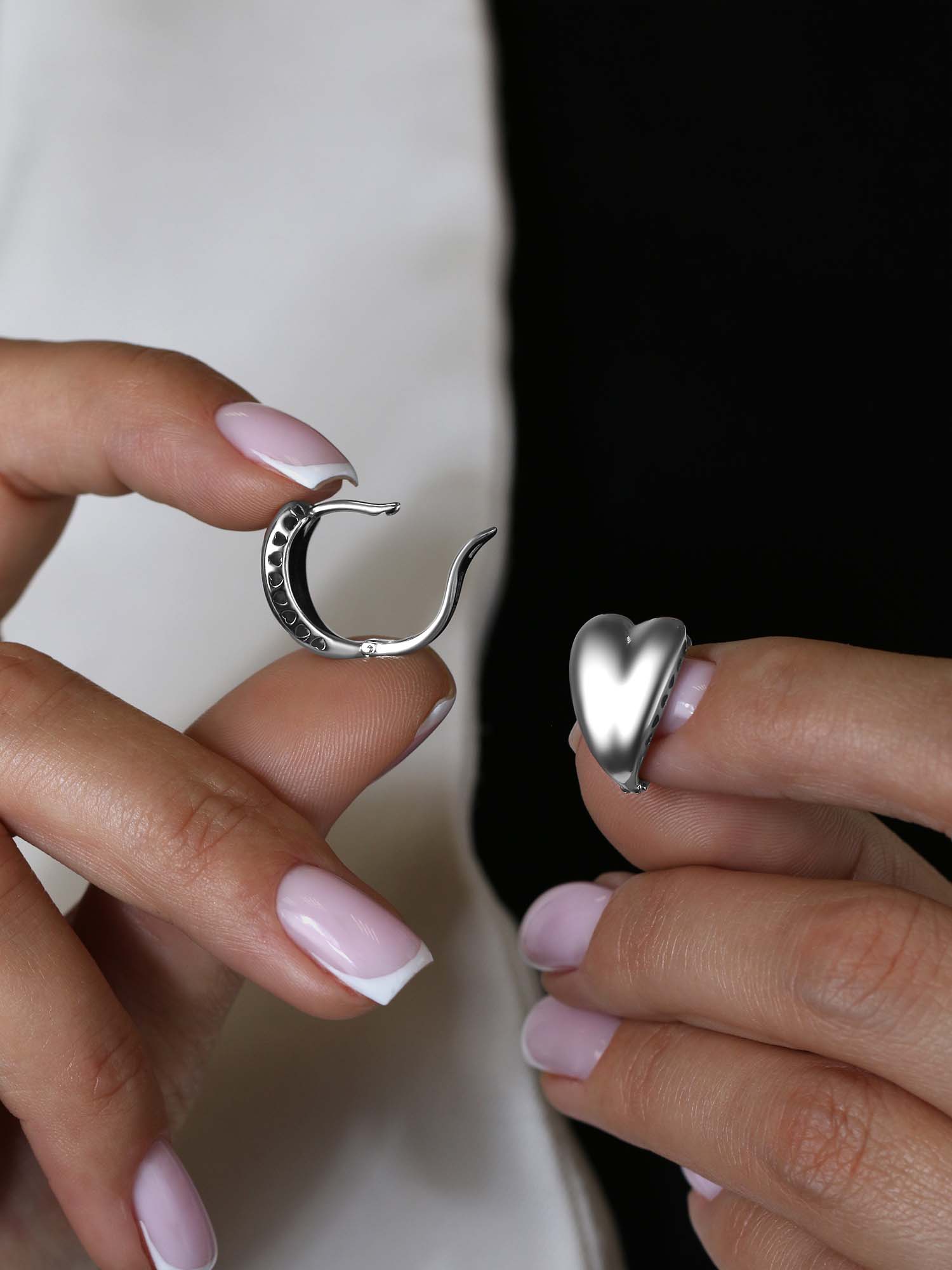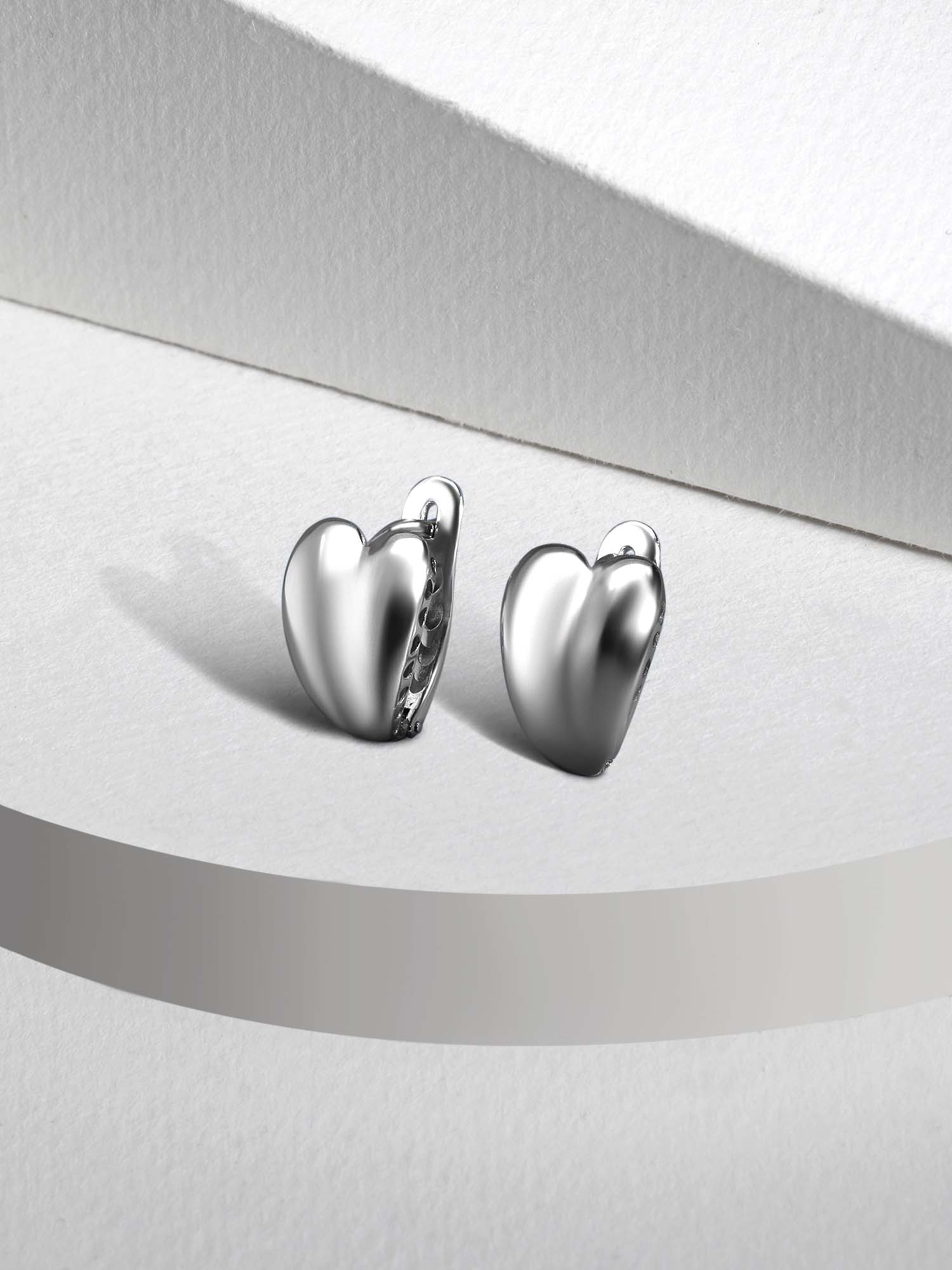 Серьги из серебра родированные - Сердца