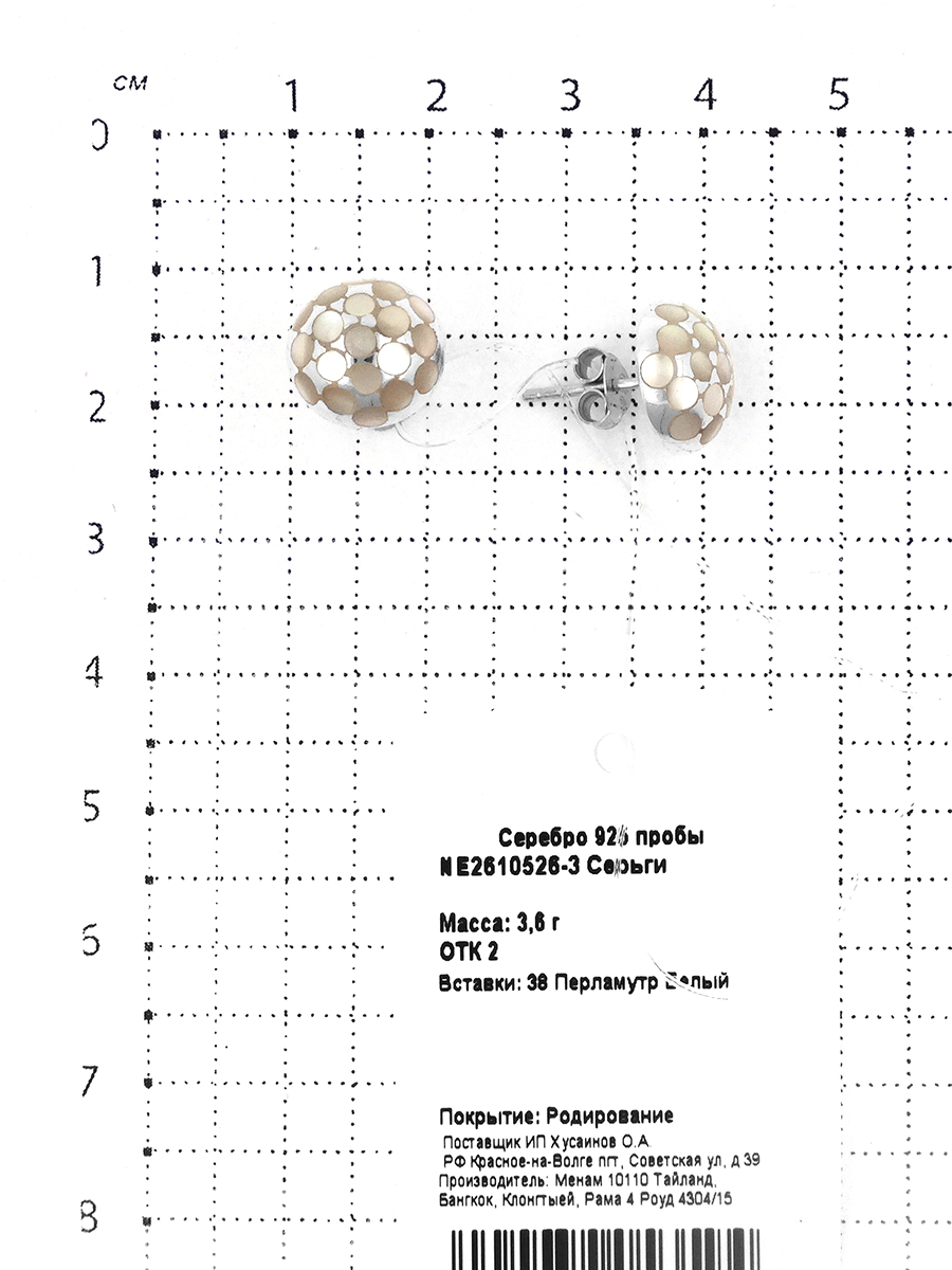 Серьги из серебра с белым перламутром родированные