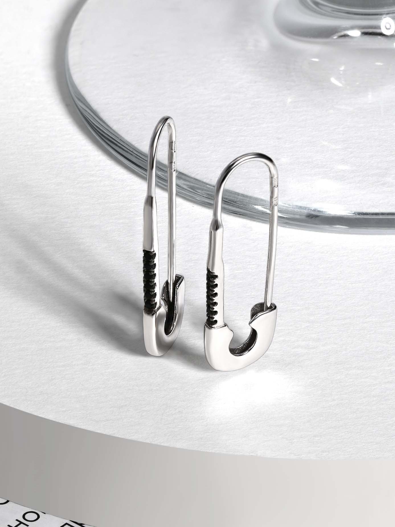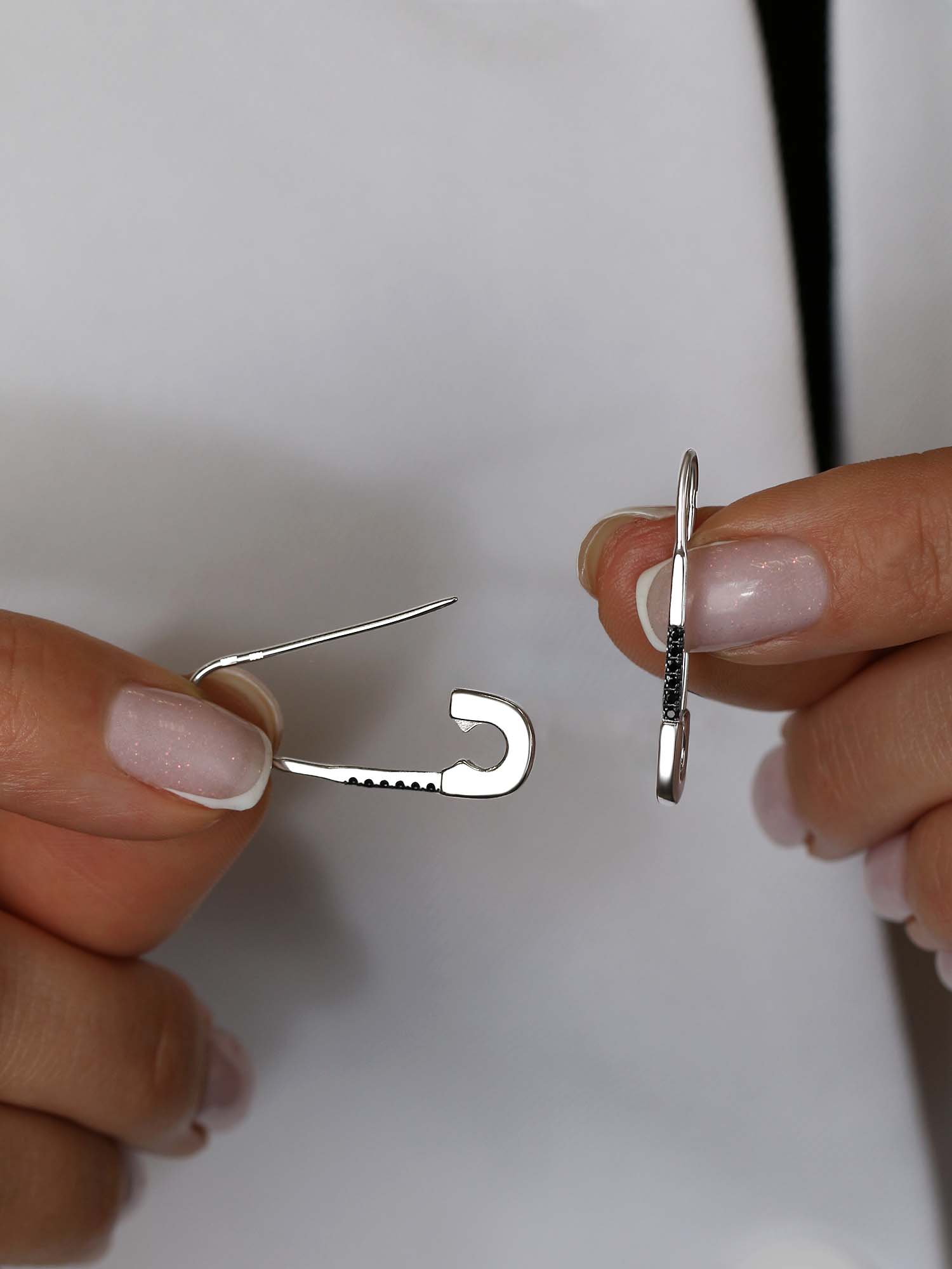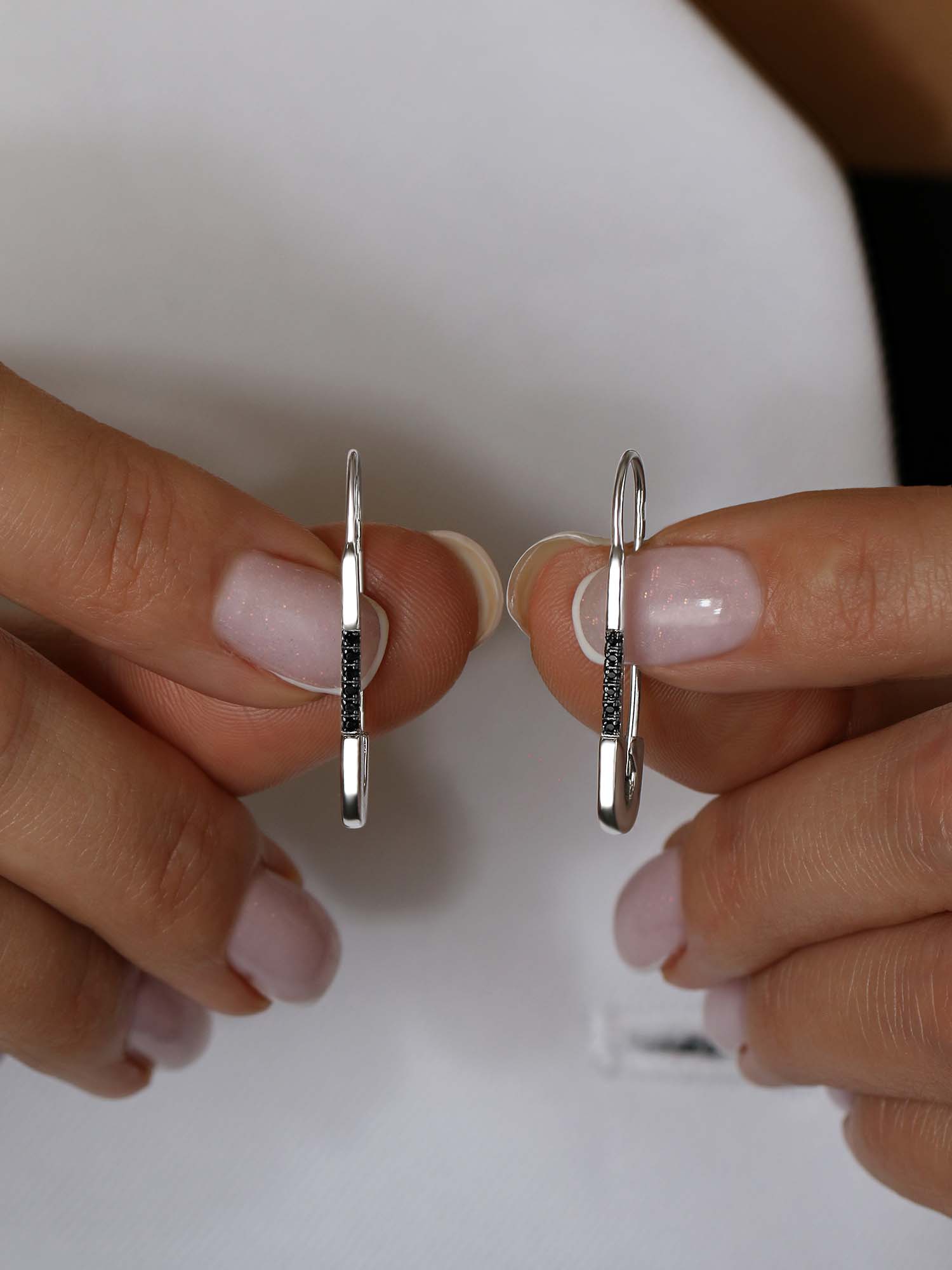 Серьги из серебра с чёрной шпинелью родированные - Булавки