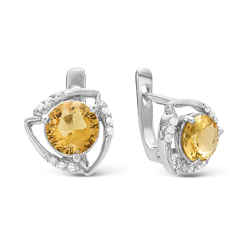 Серьги из серебра с цитрином и фианитами родированные 2-мэ-22 цитрин