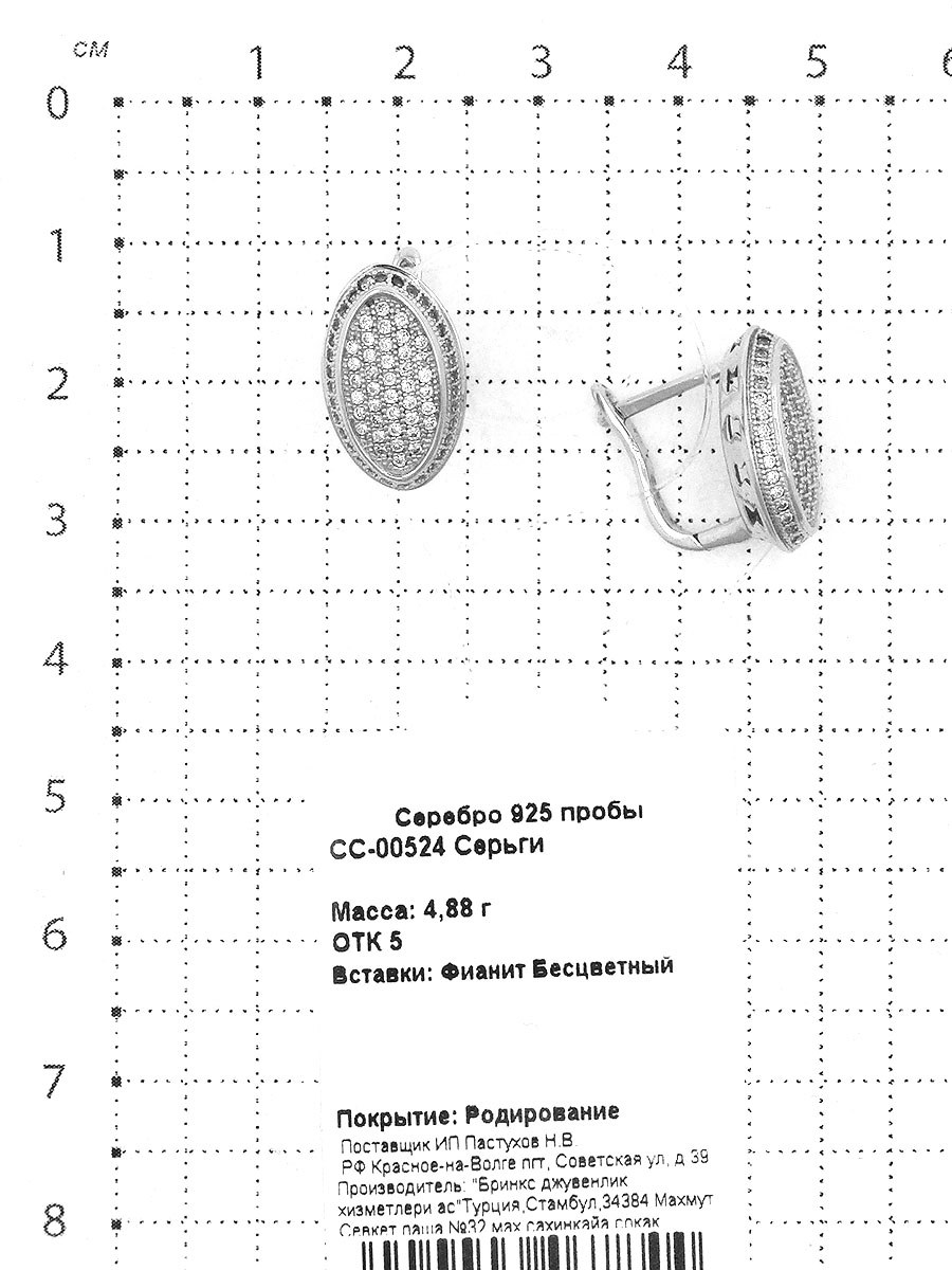 Серьги из серебра с фианитами родированные СС-00524