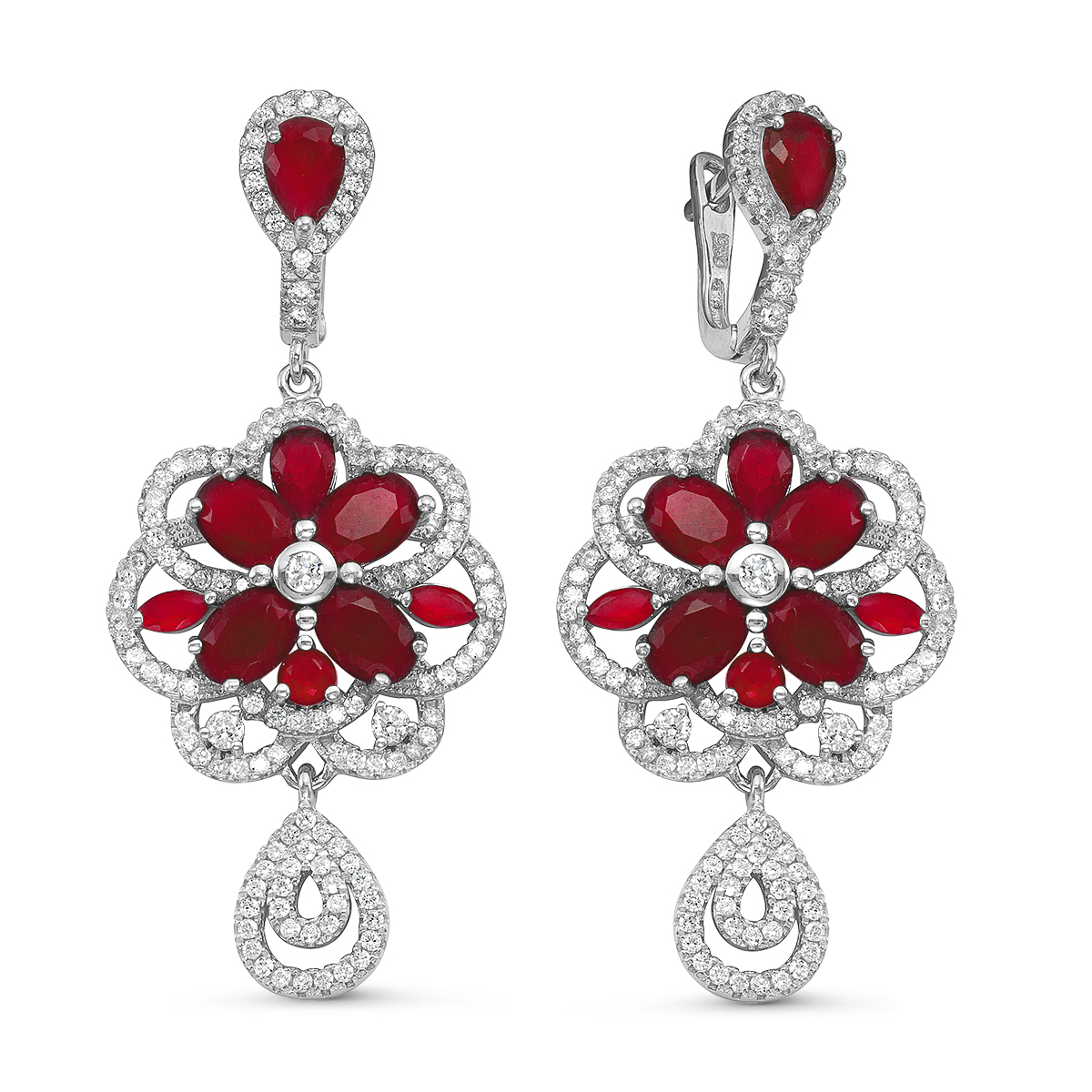 Серьги из серебра с фианитами родированные