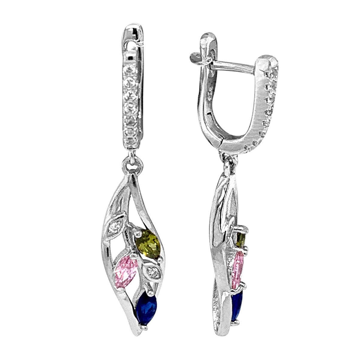 Серьги из серебра с фианитами родированные