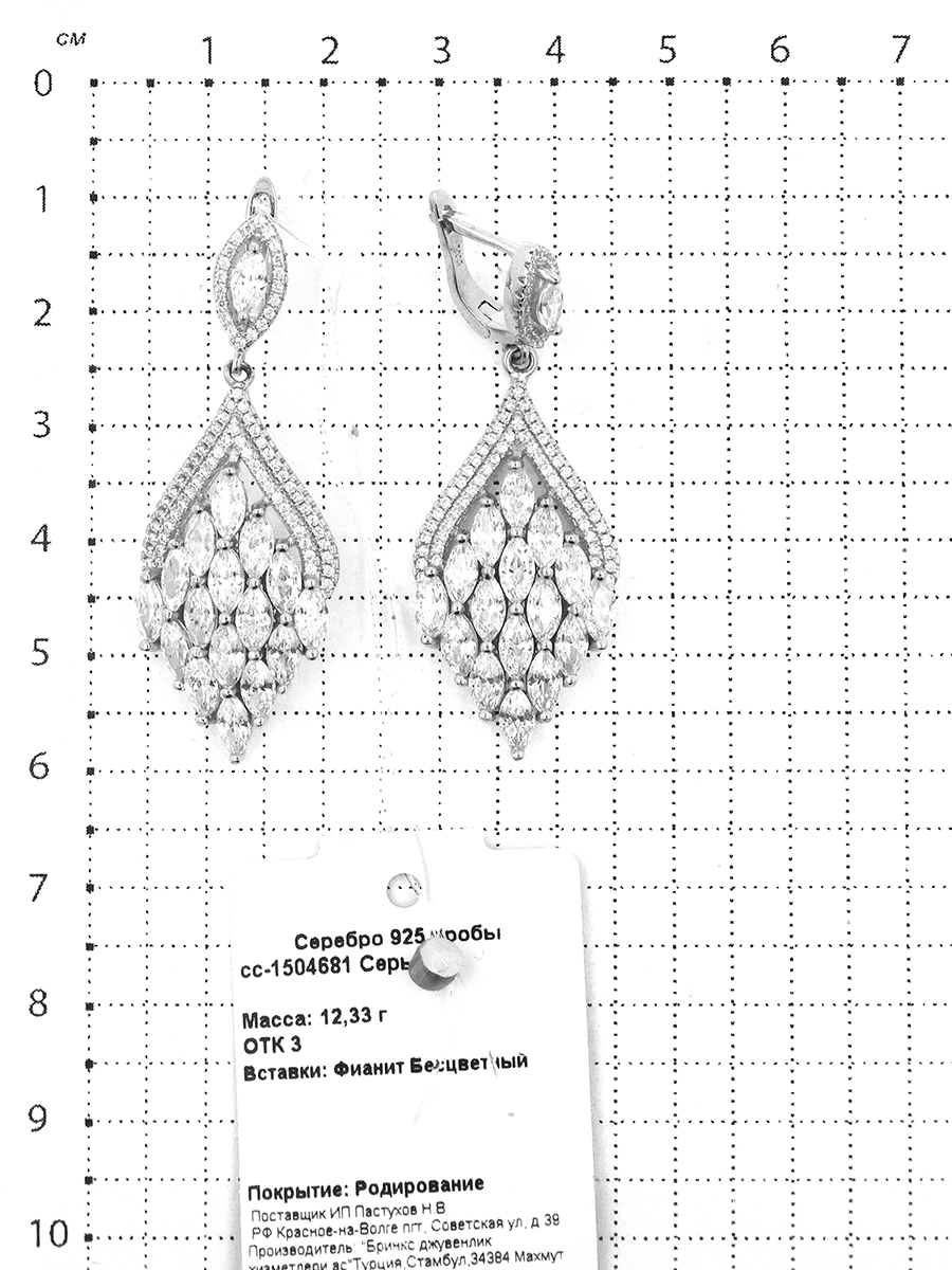 Серьги из серебра с фианитами родированные сс-1504681
