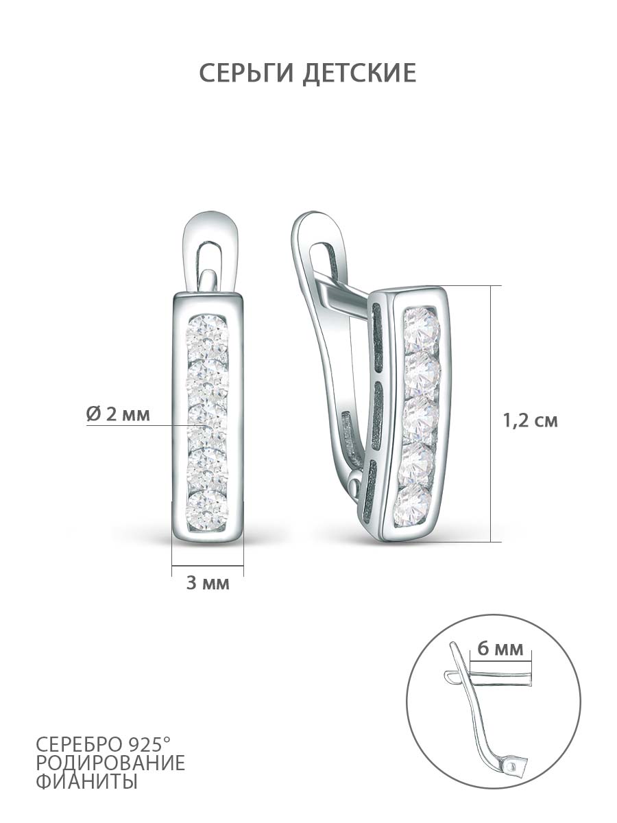 Серьги детские из серебра с фианитами родированные 925 пробы 402011-128р