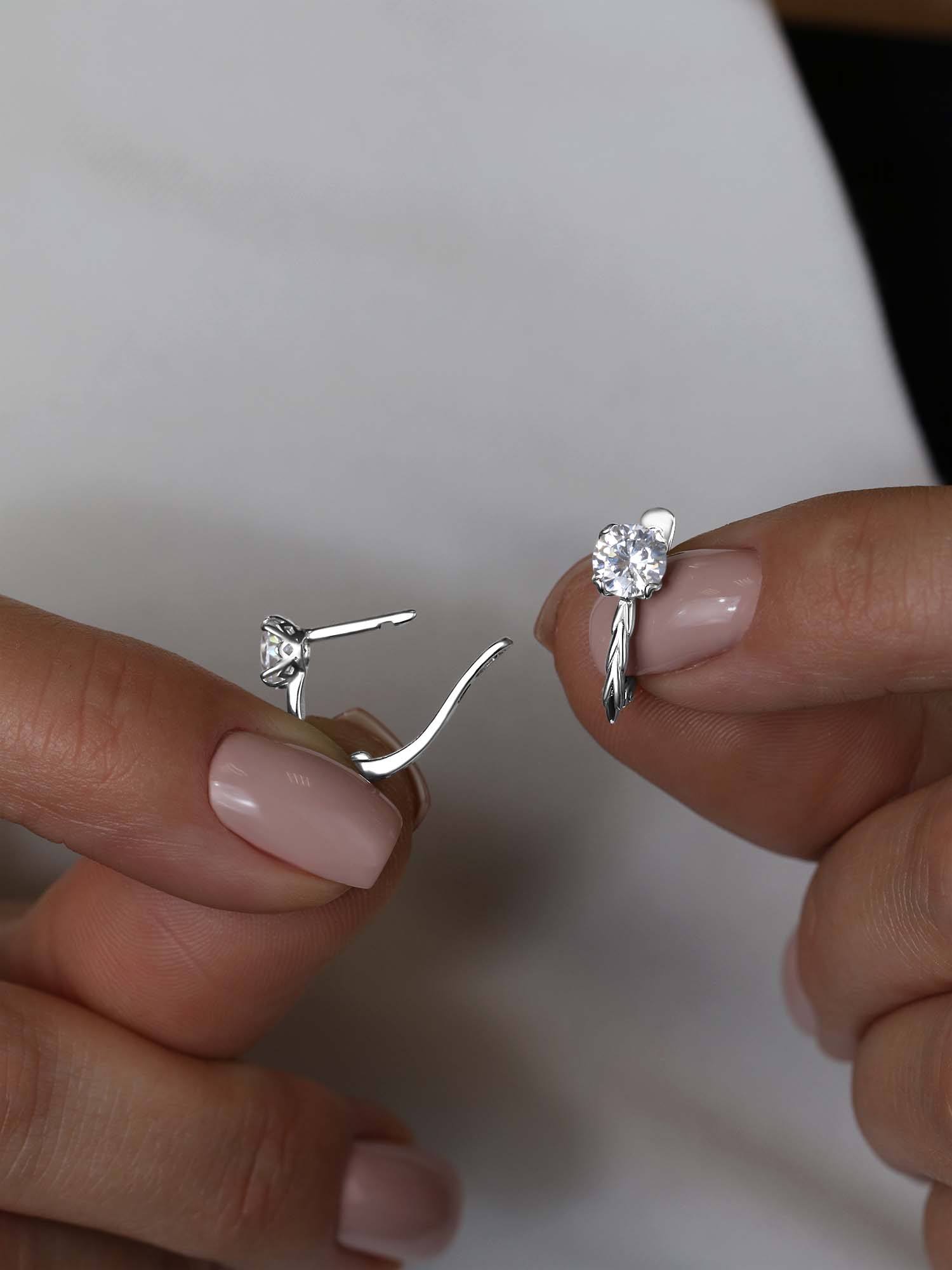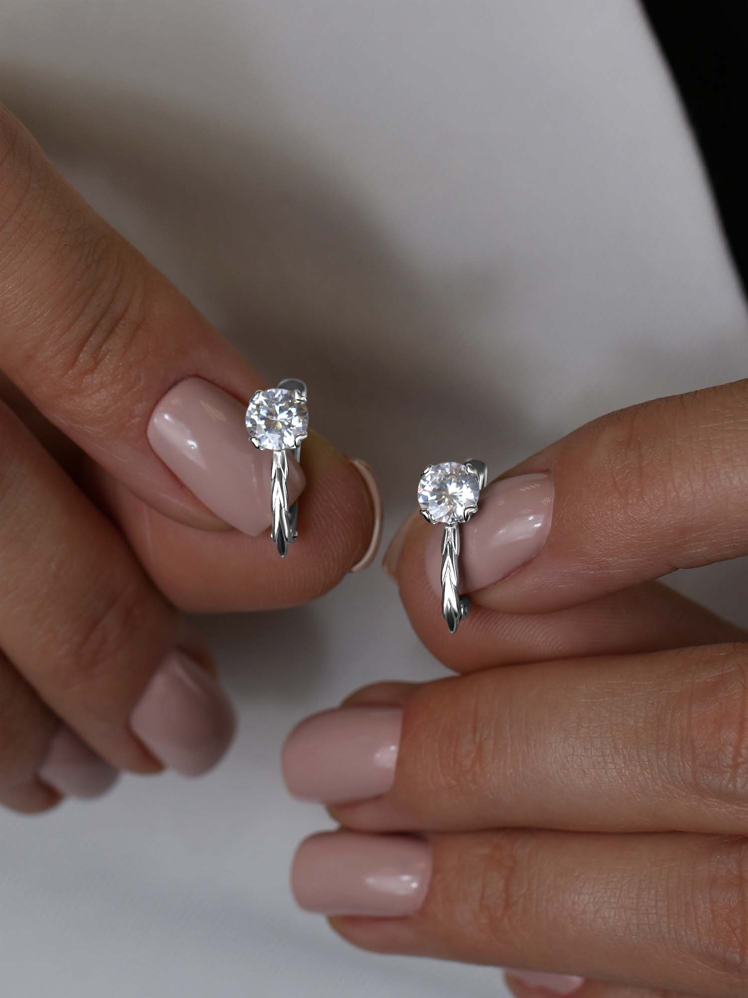 Серьги из серебра с фианитами родированные 925 пробы С-7299р200