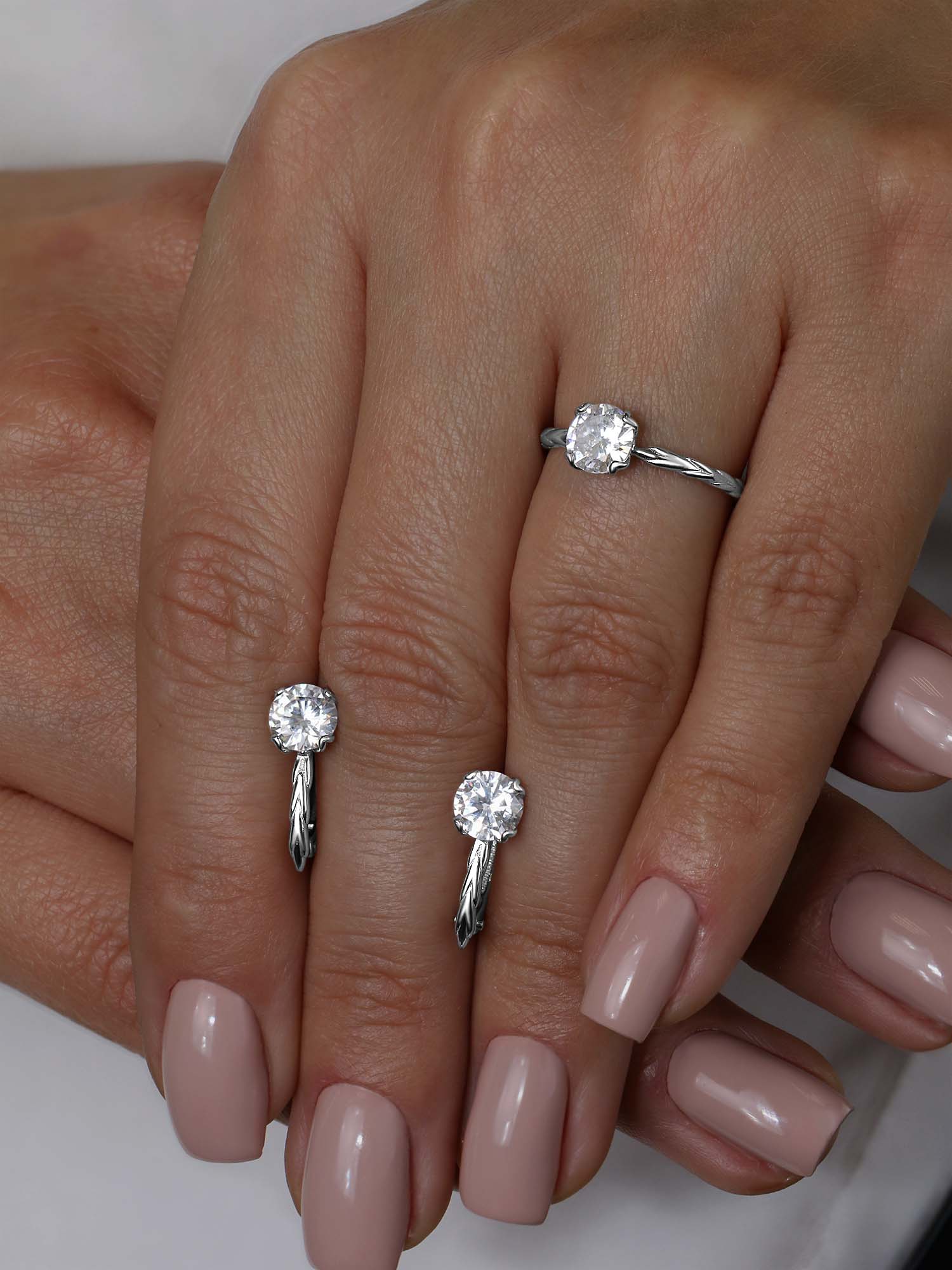 Кольцо из серебра с фианитом родированное 925 пробы К-7299р200