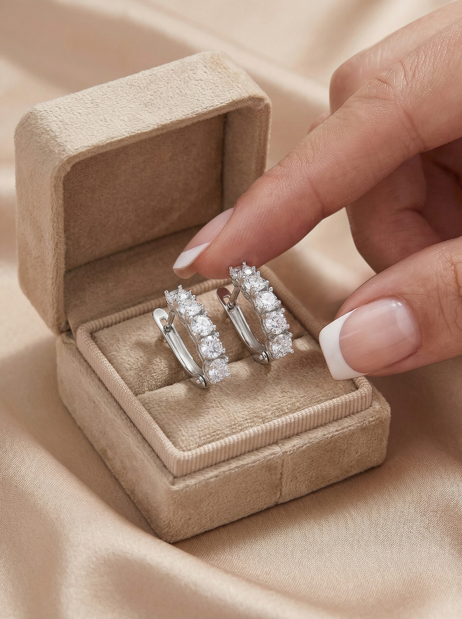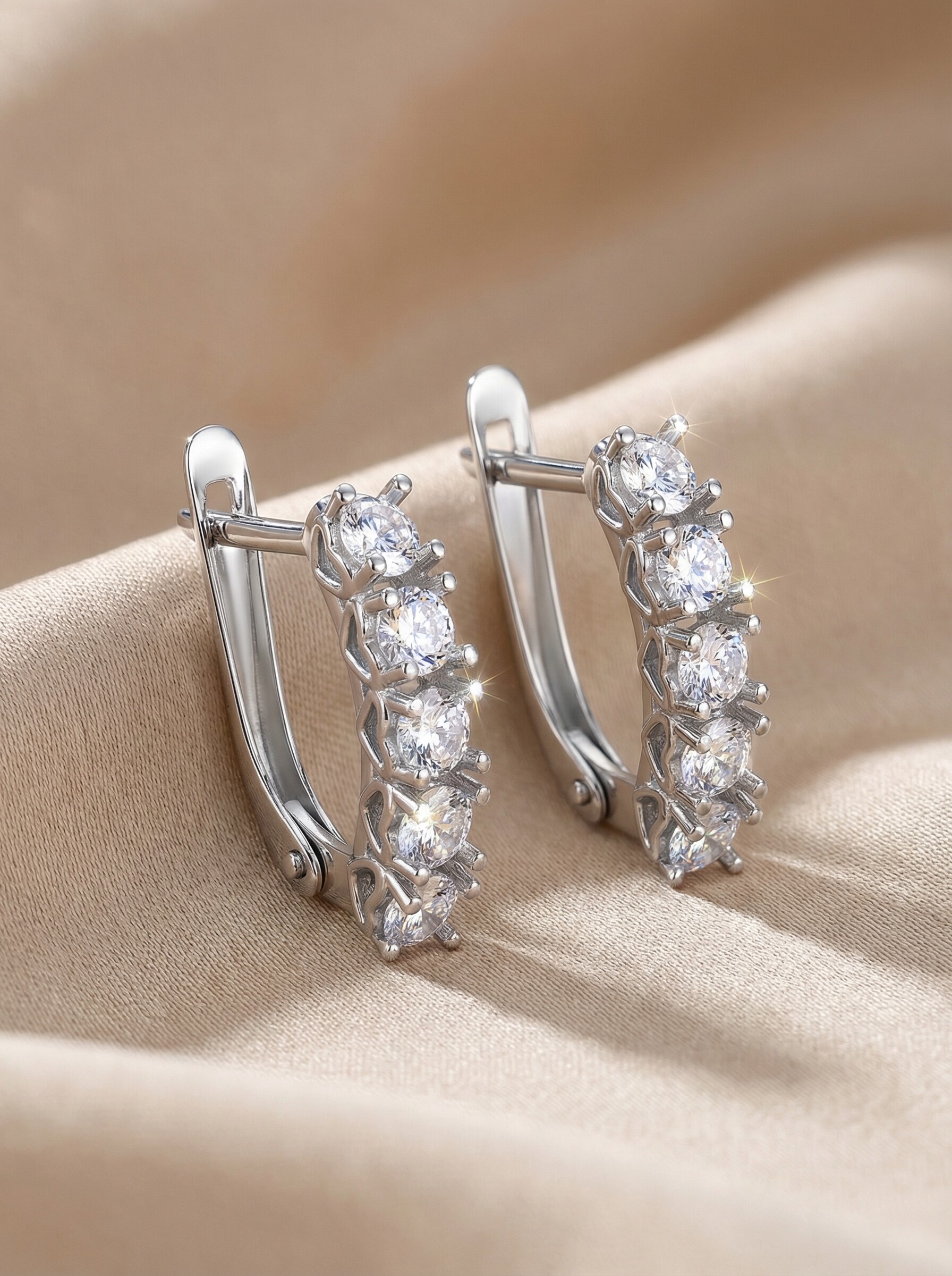 Серьги из серебра с фианитами родированные 925 пробы 11-0289
