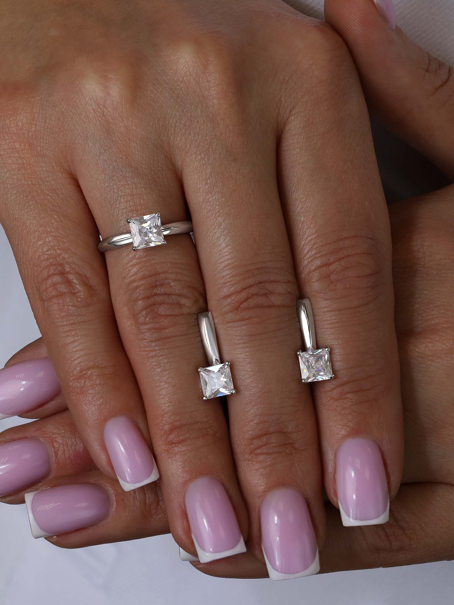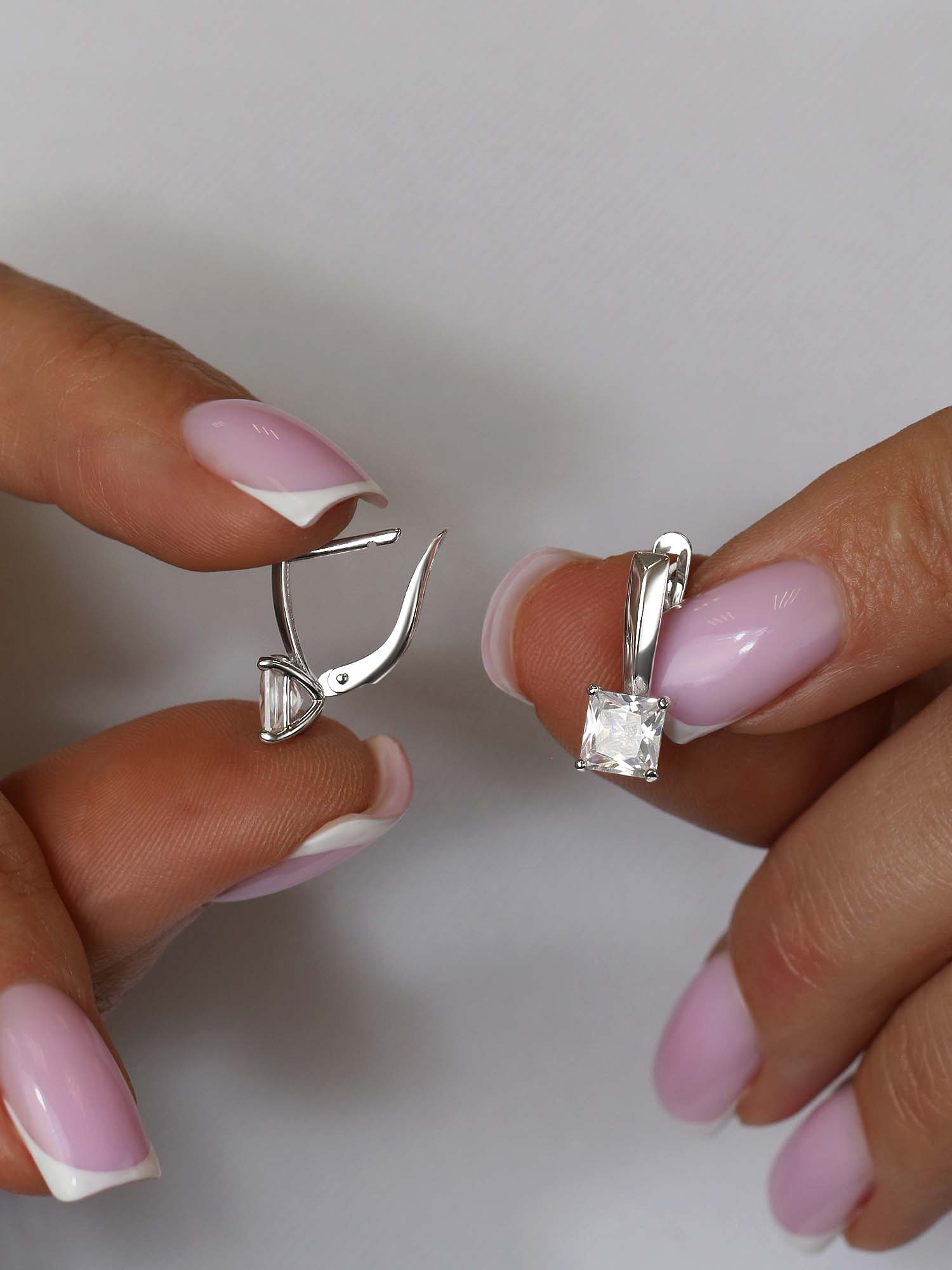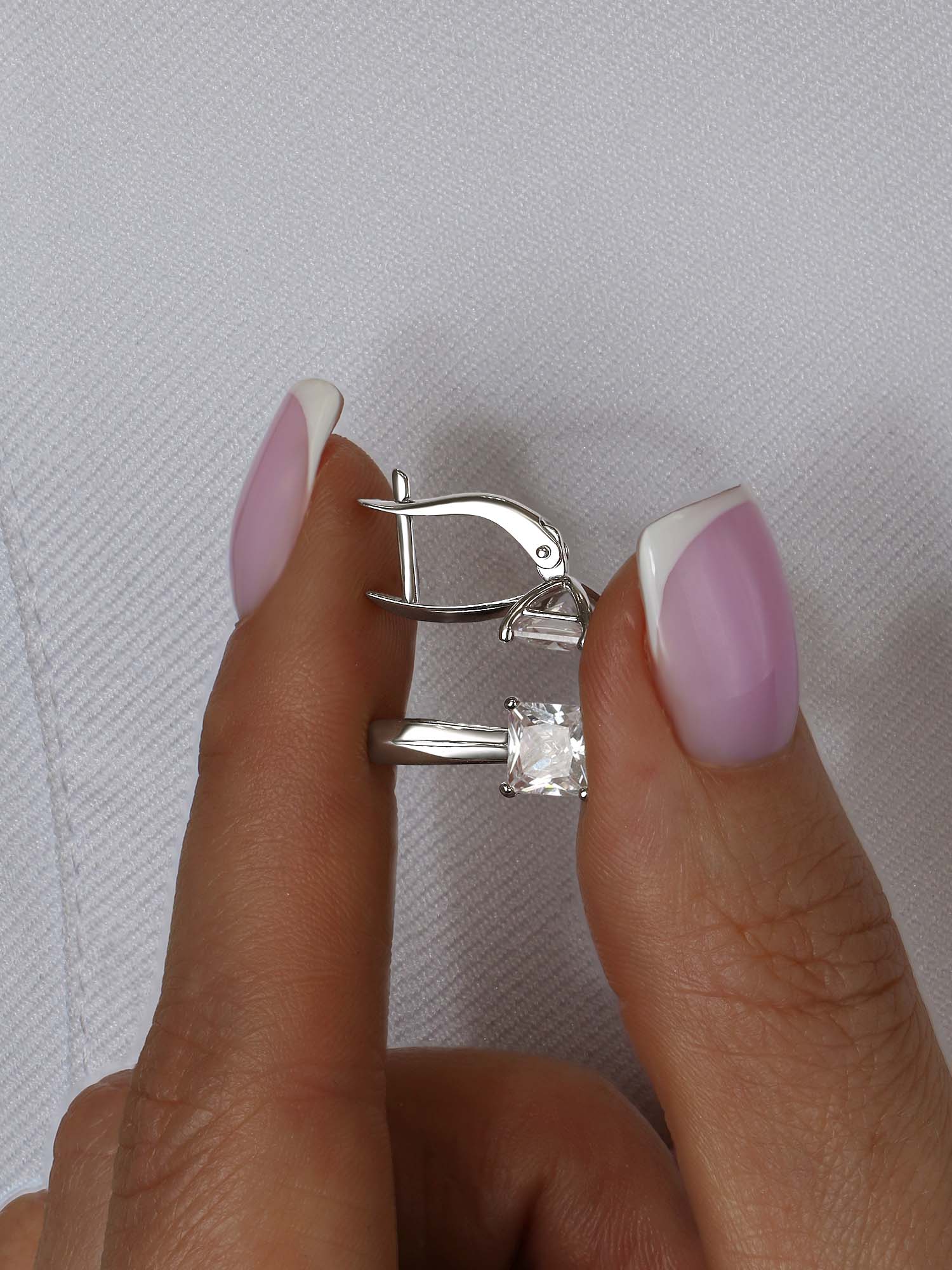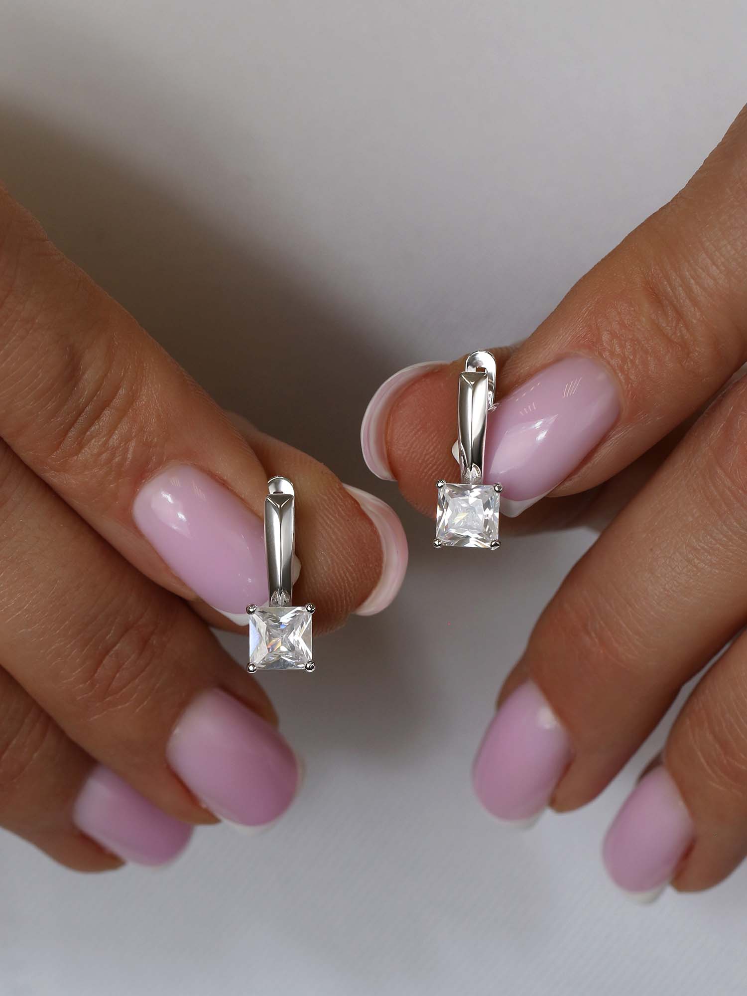 Серьги из серебра с фианитами родированные