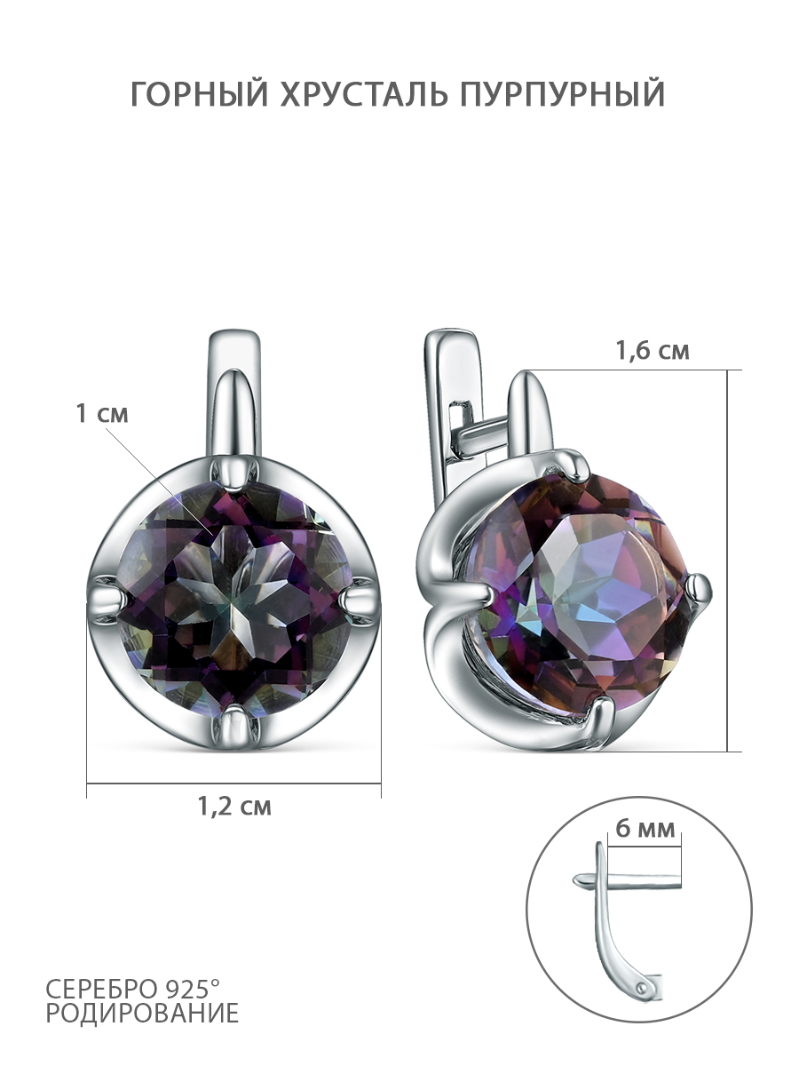 Серьги из серебра с горным хрусталём родированные 311274-GH10