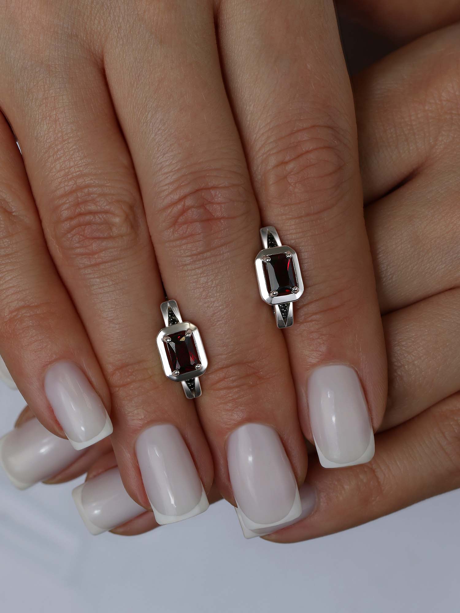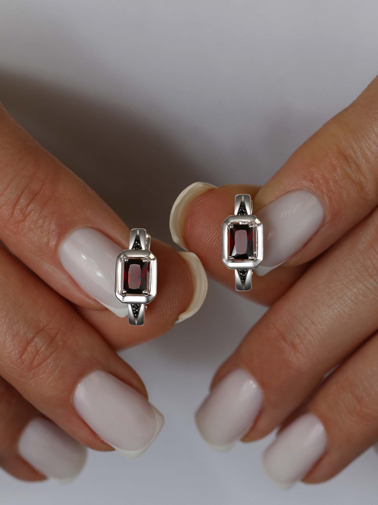 Серьги из серебра с гранатом и фианитами родированные