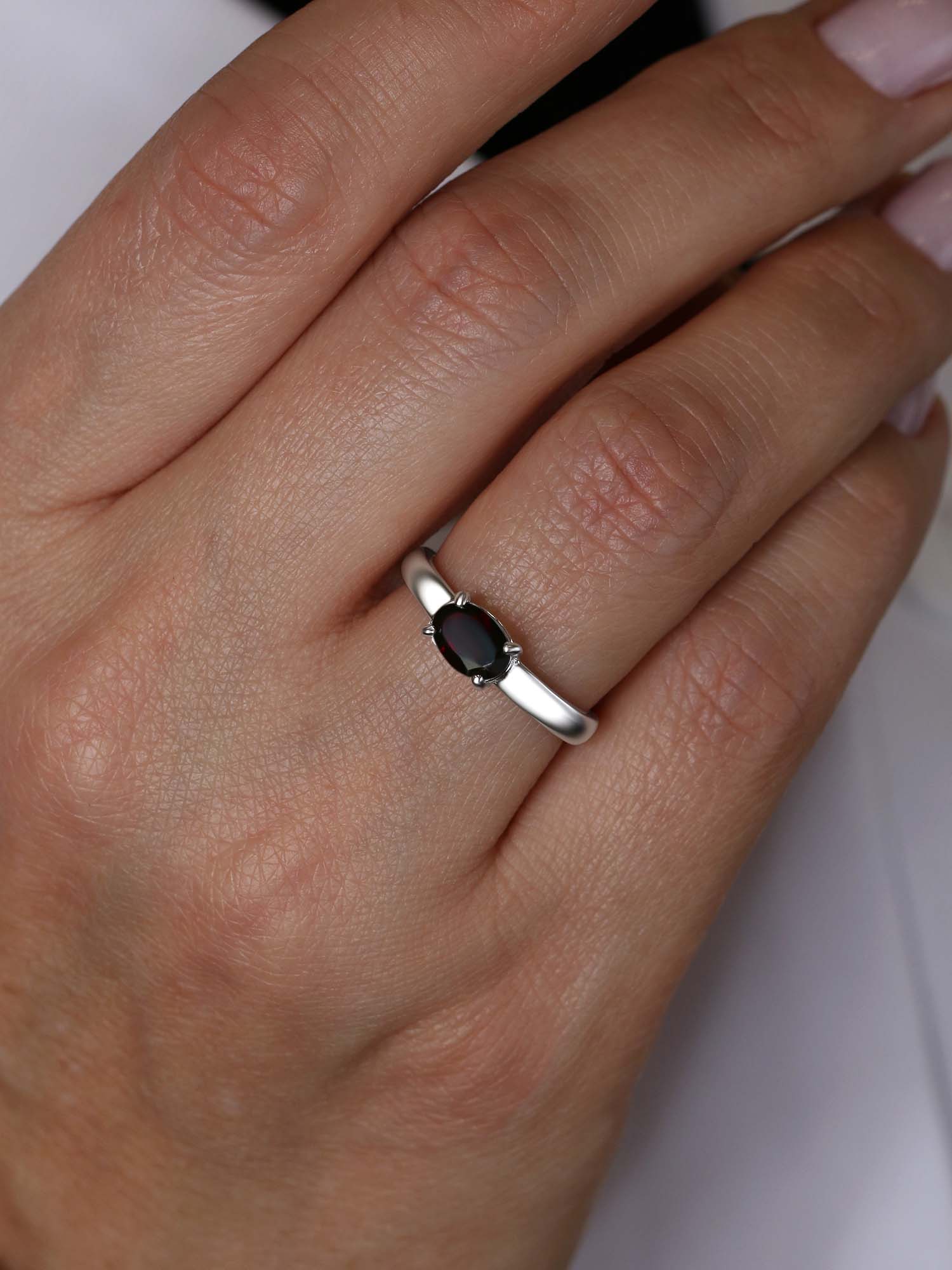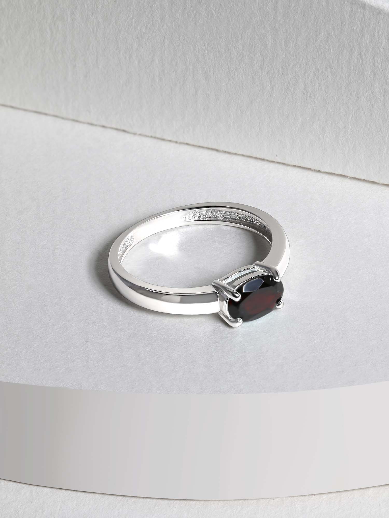 Кольцо из серебра с гранатом родированное