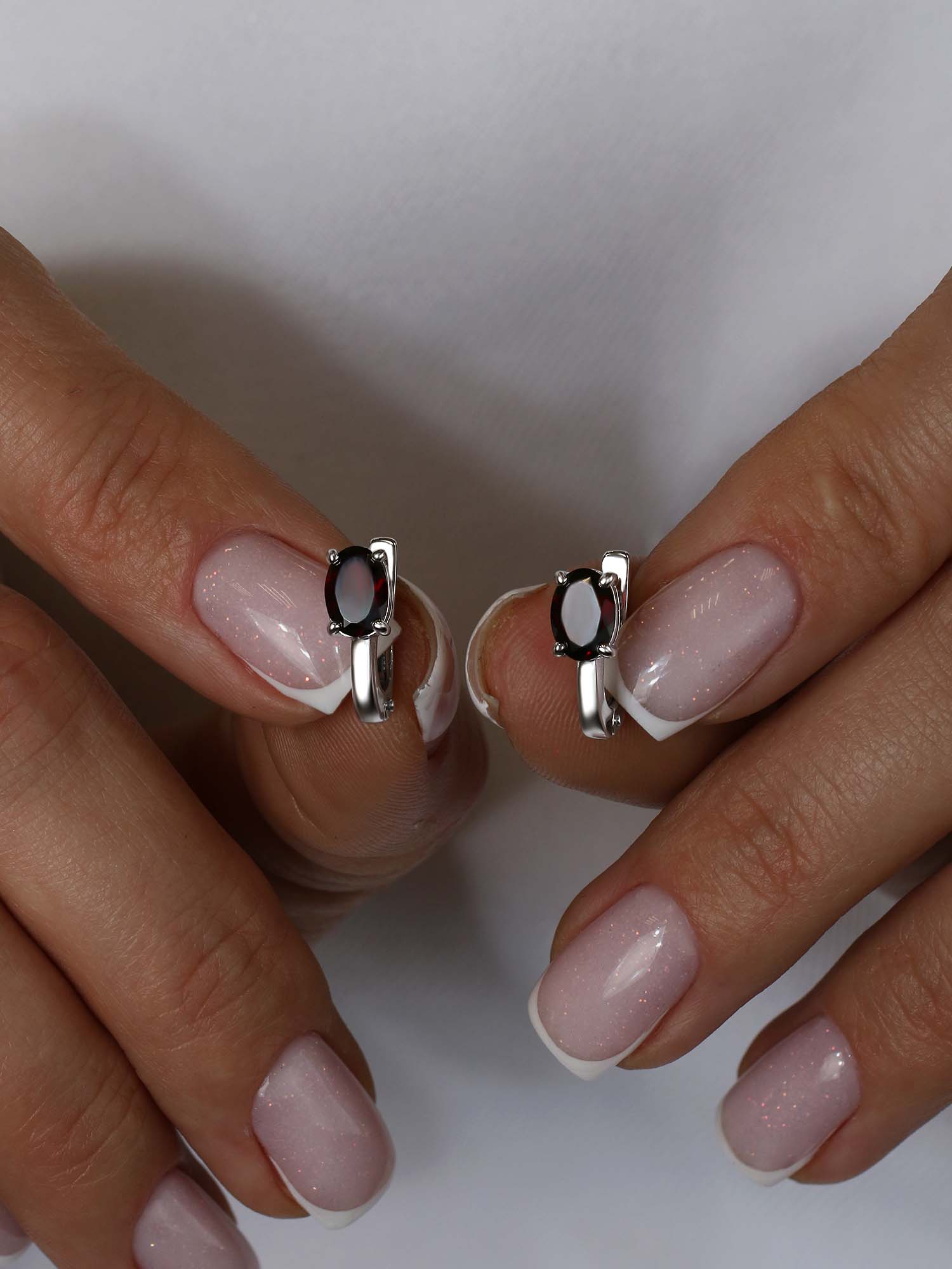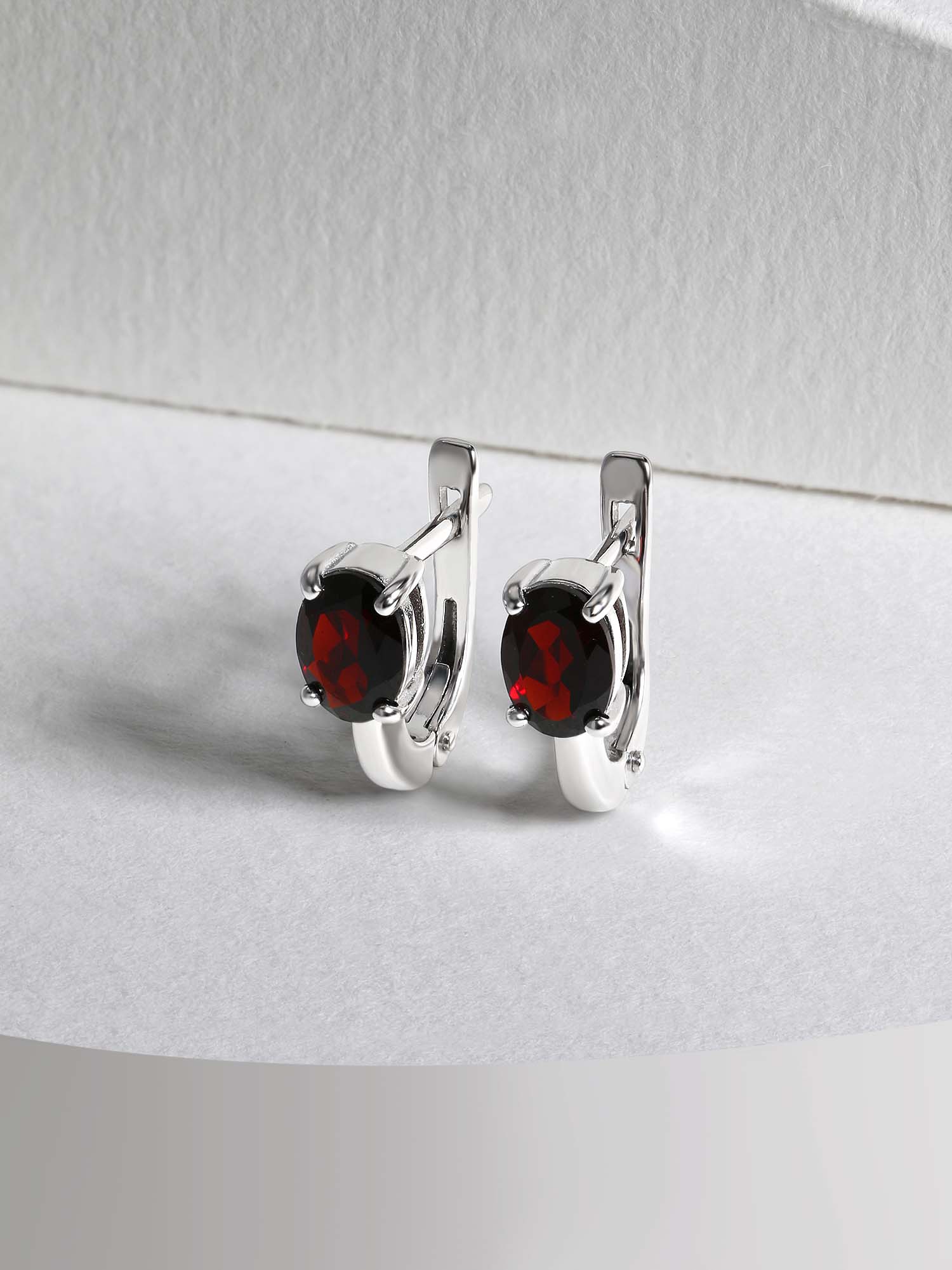 Серьги из серебра с гранатом родированные