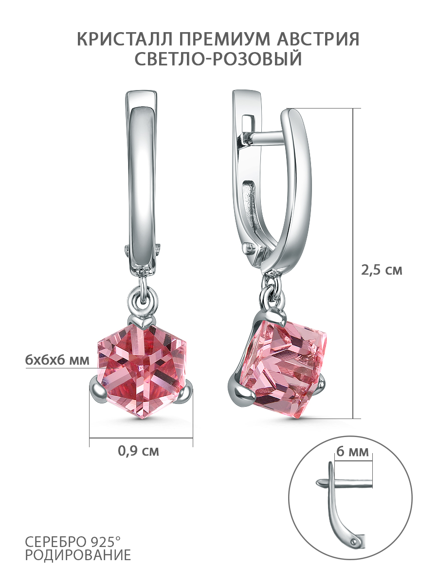 Серьги из серебра с светло-розовыми кристаллами Сваровски родированные