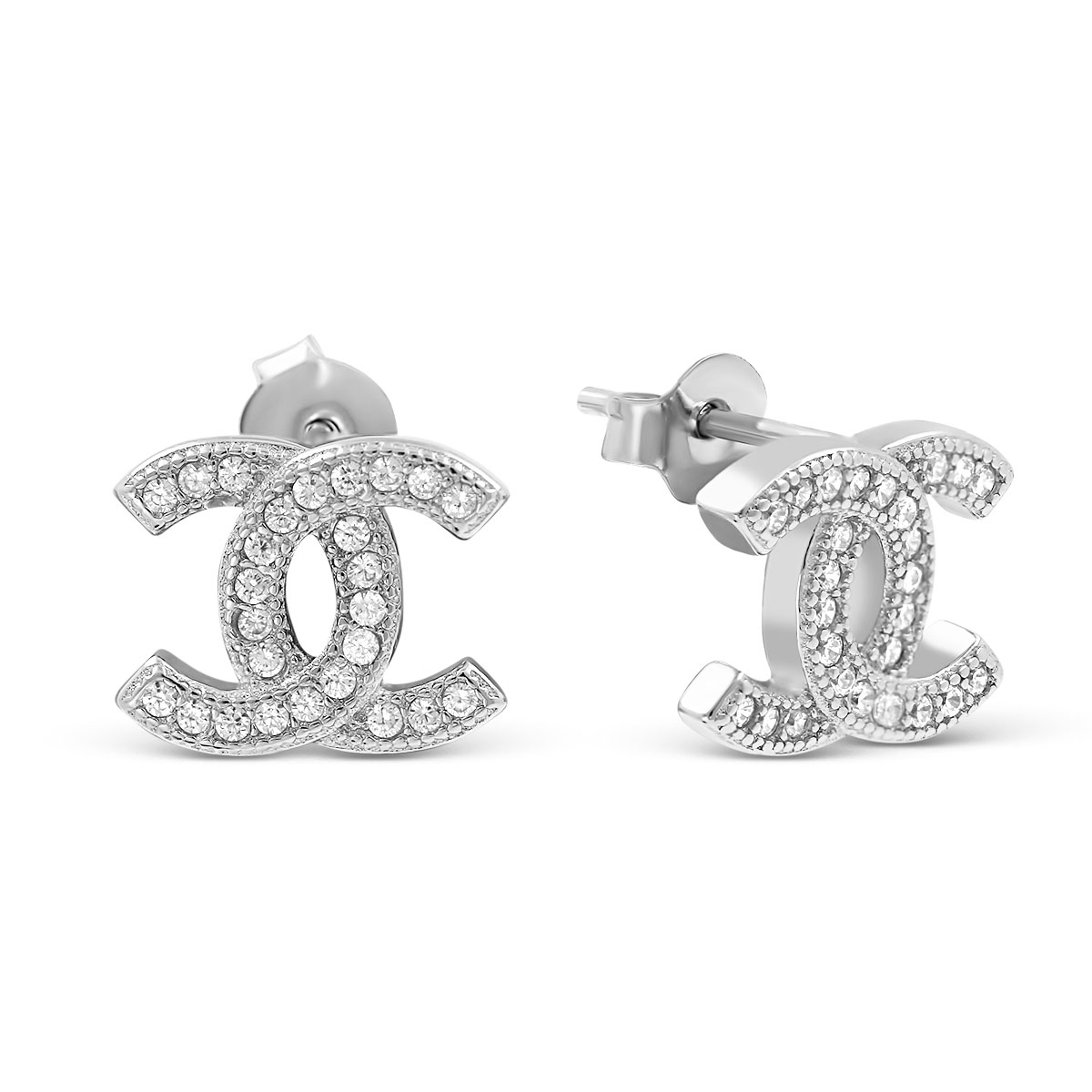 Серьги из серебра с куб.цирконием родированные