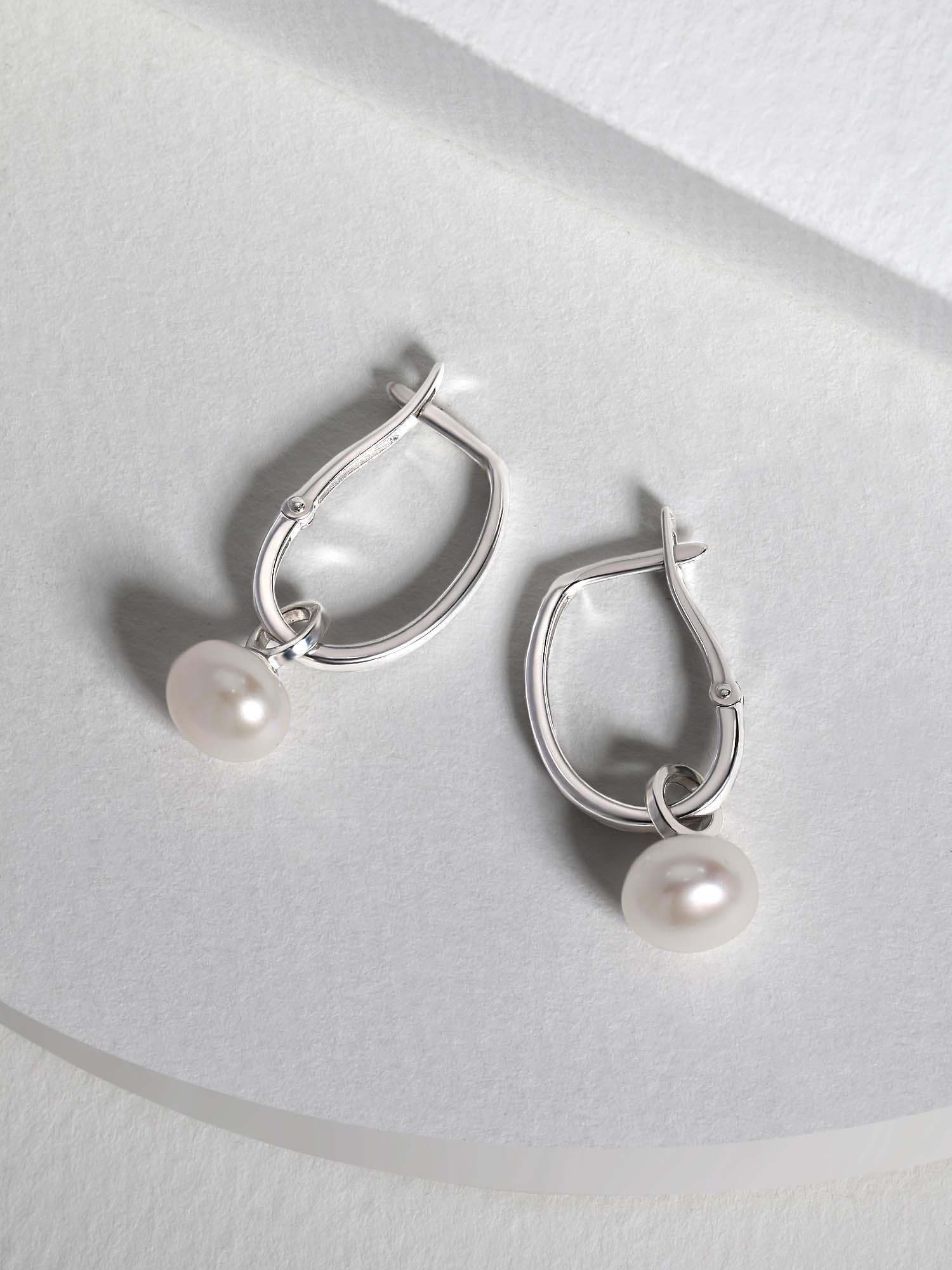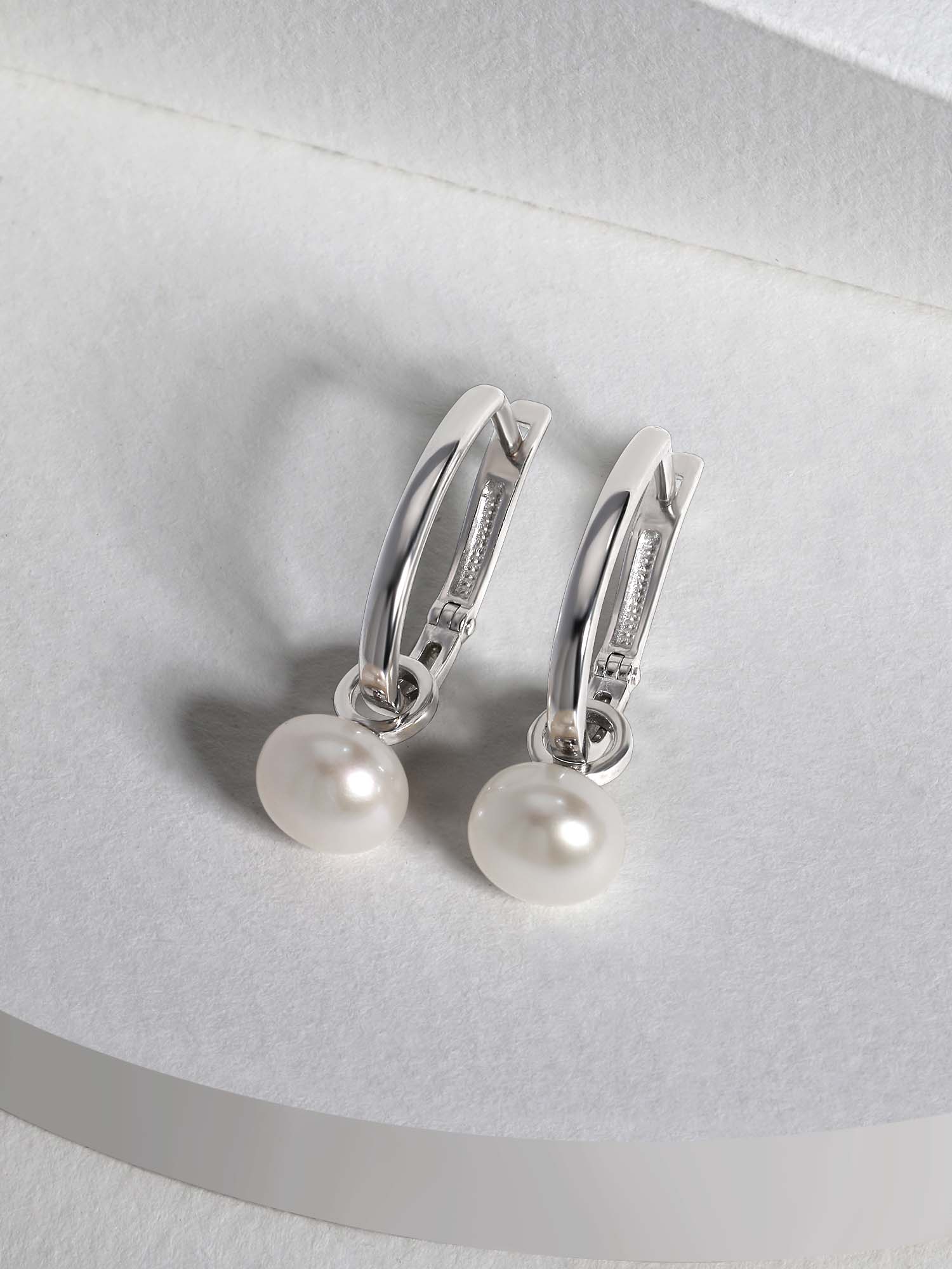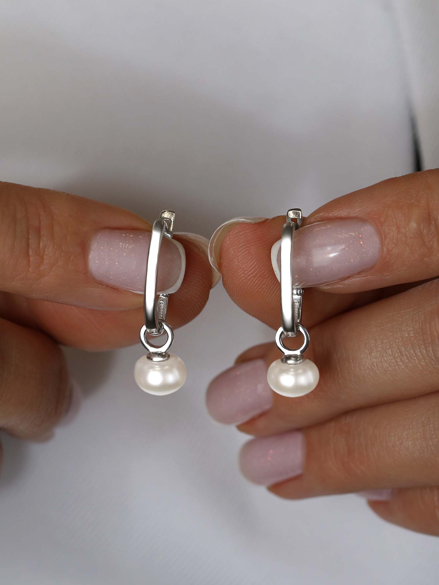 Серьги из серебра с культивированным жемчугом родированные (2 в 1)