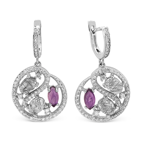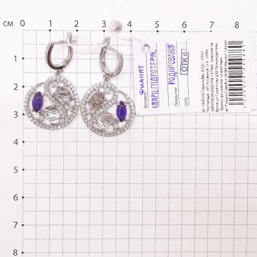 Серьги из серебра с кварцем гт и фианитами родированные ас-1405316