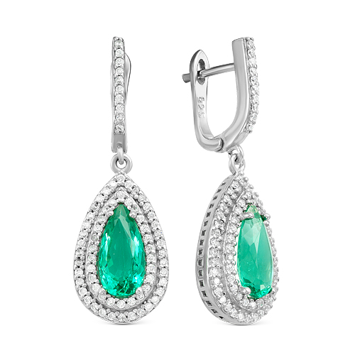 Серьги из серебра с кварцем параиба и фианитами родированные