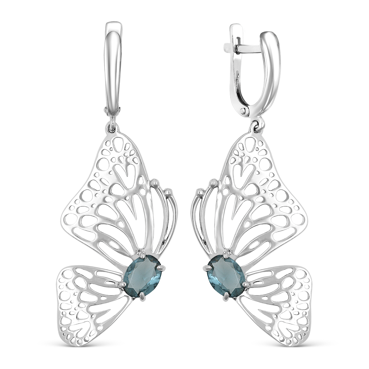 Серьги из серебра с кварцем топаз родированные с2924р102