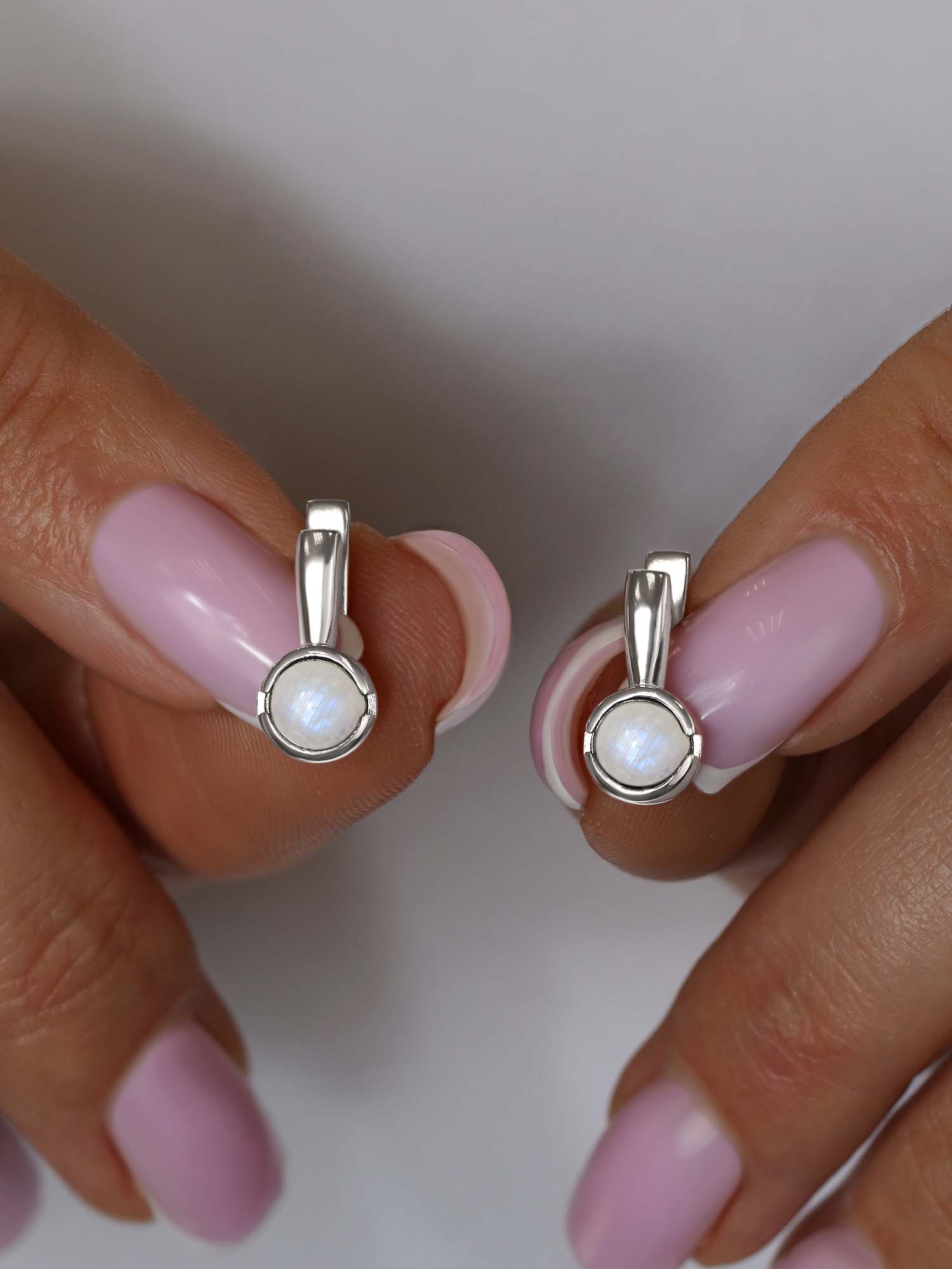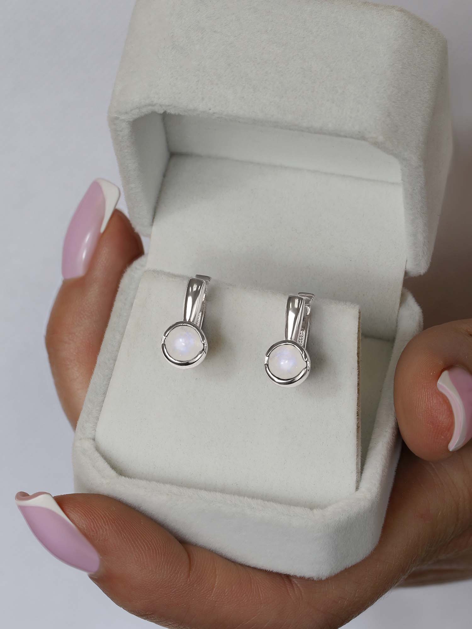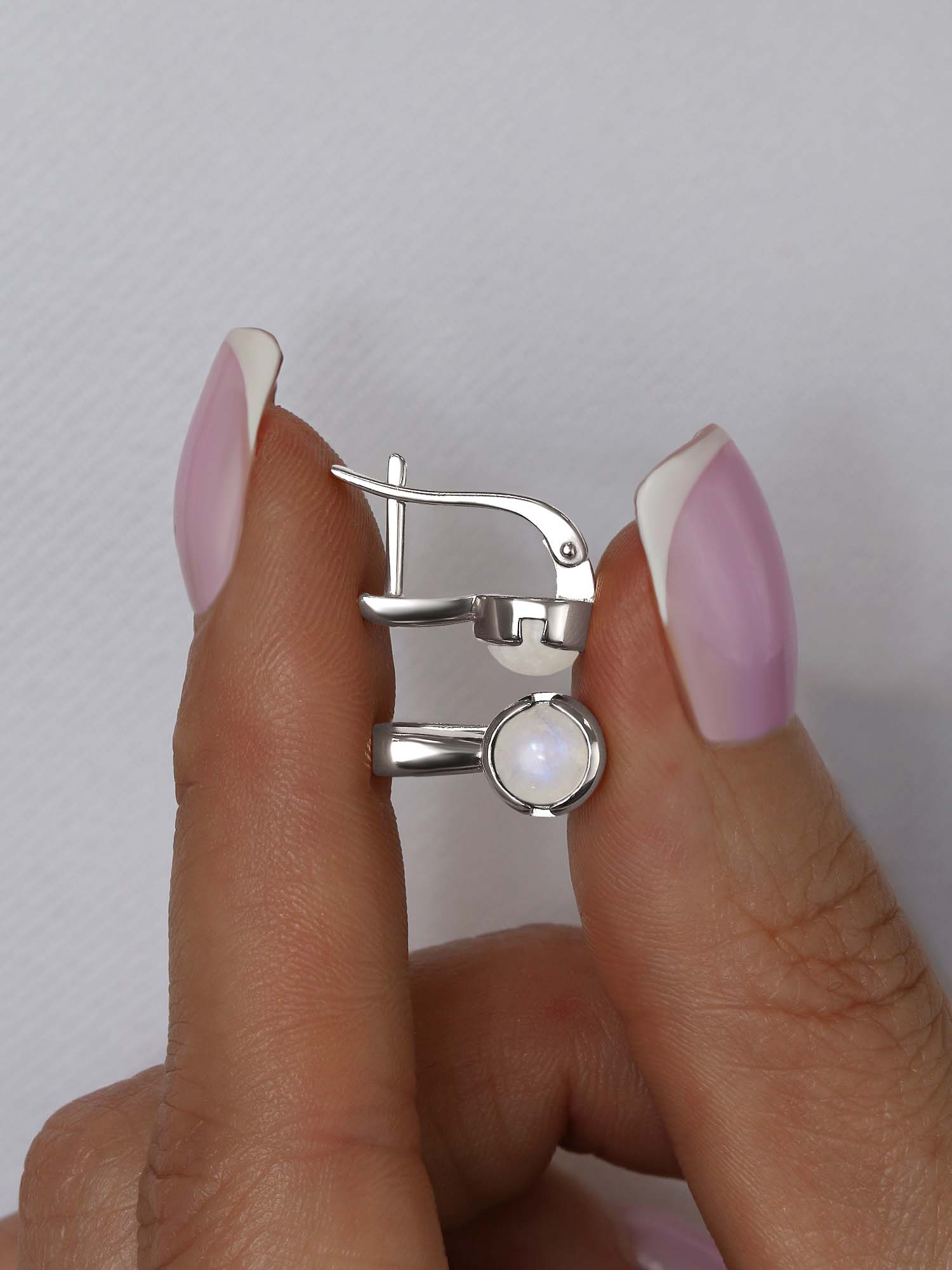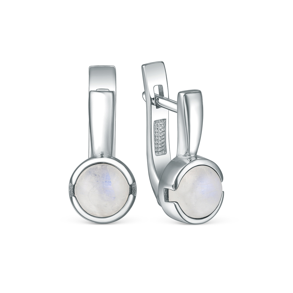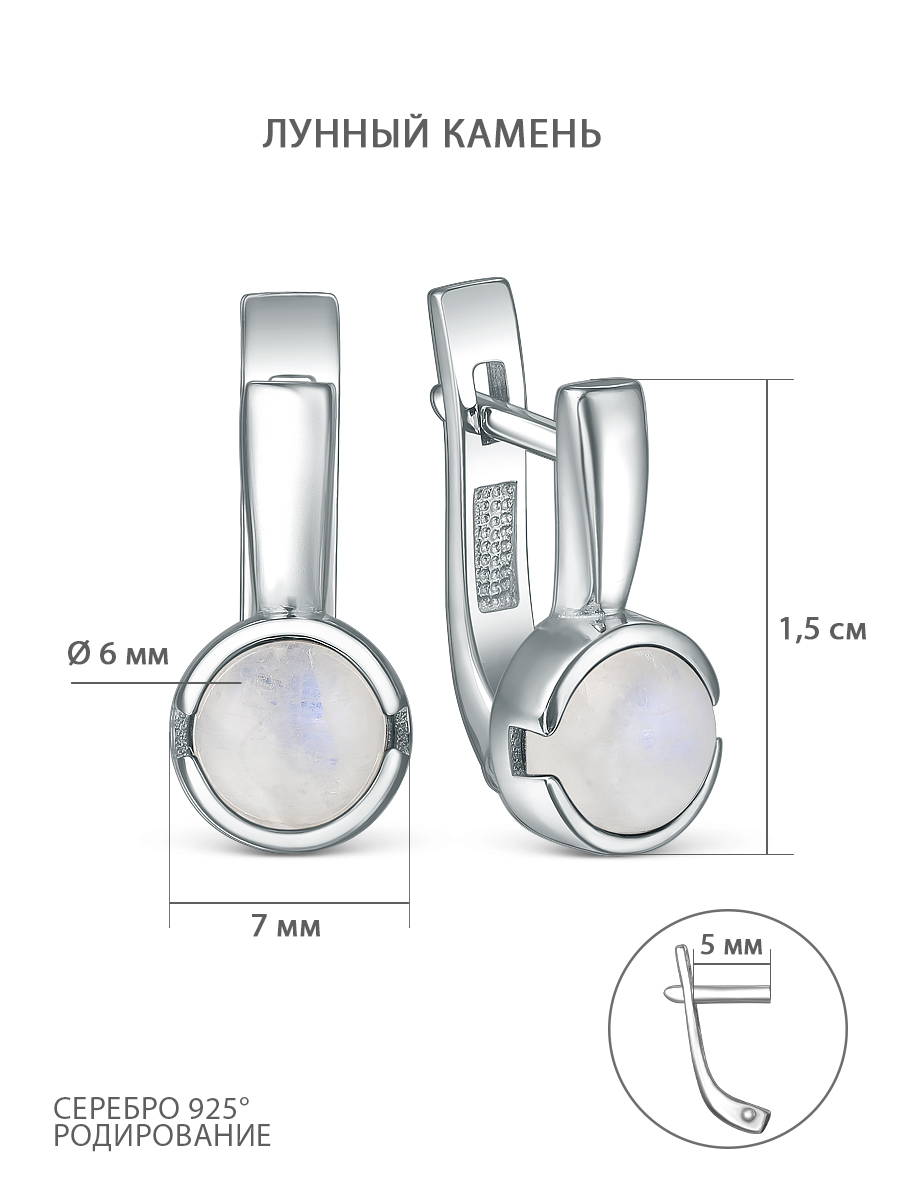 Серьги из серебра с лунным камнем родированные