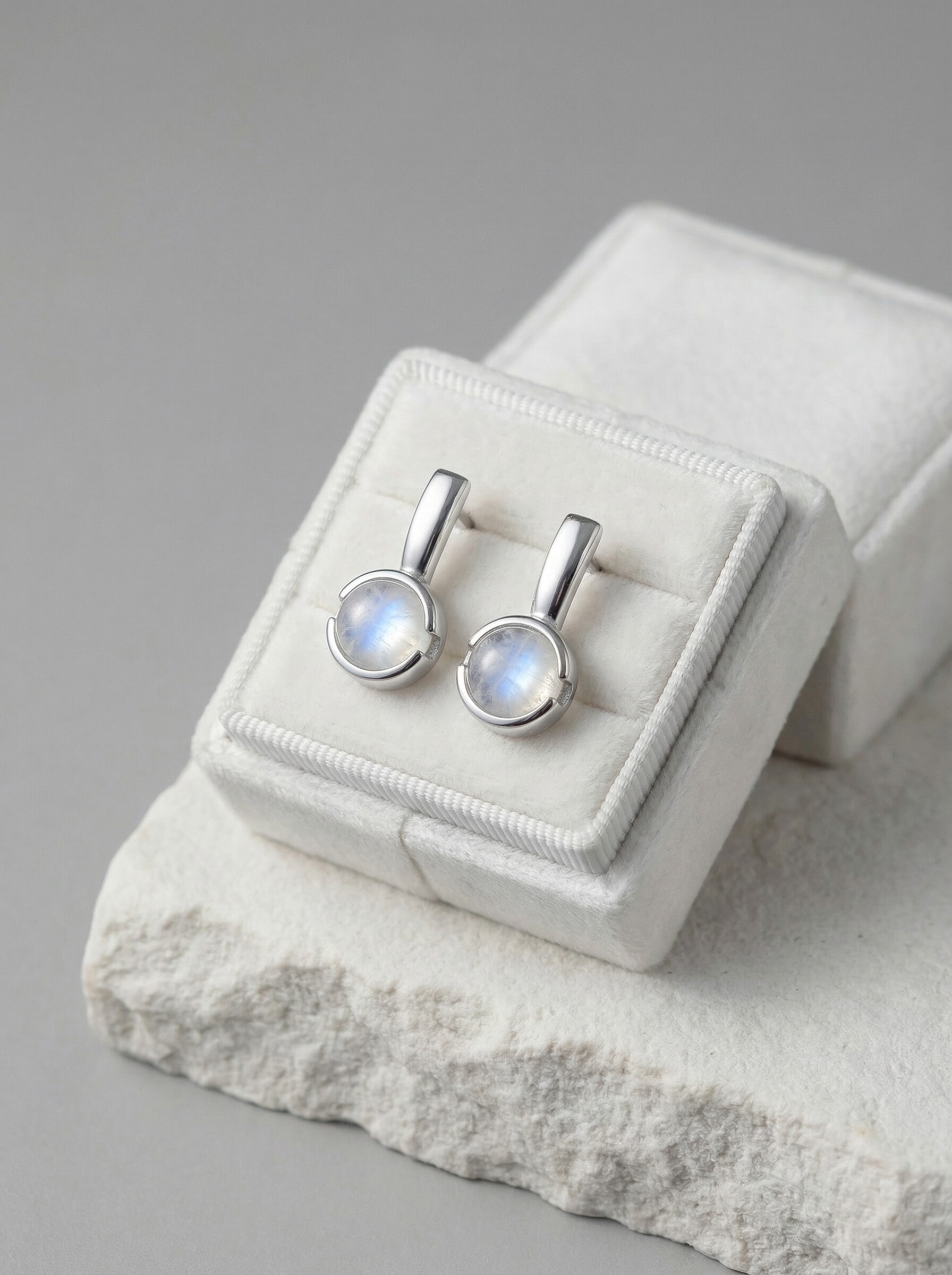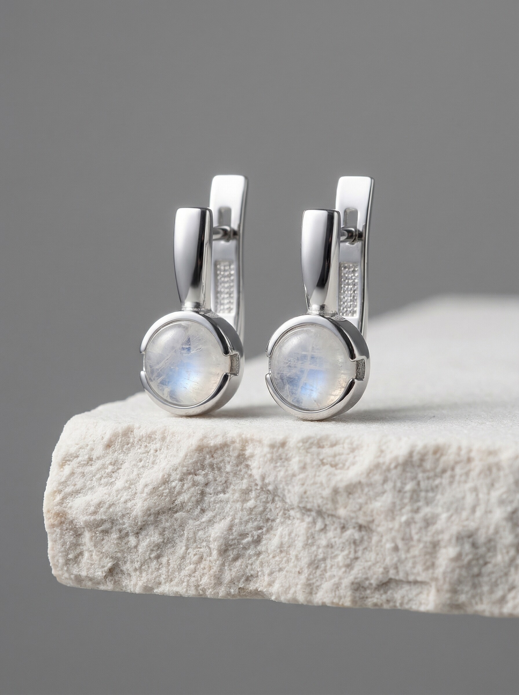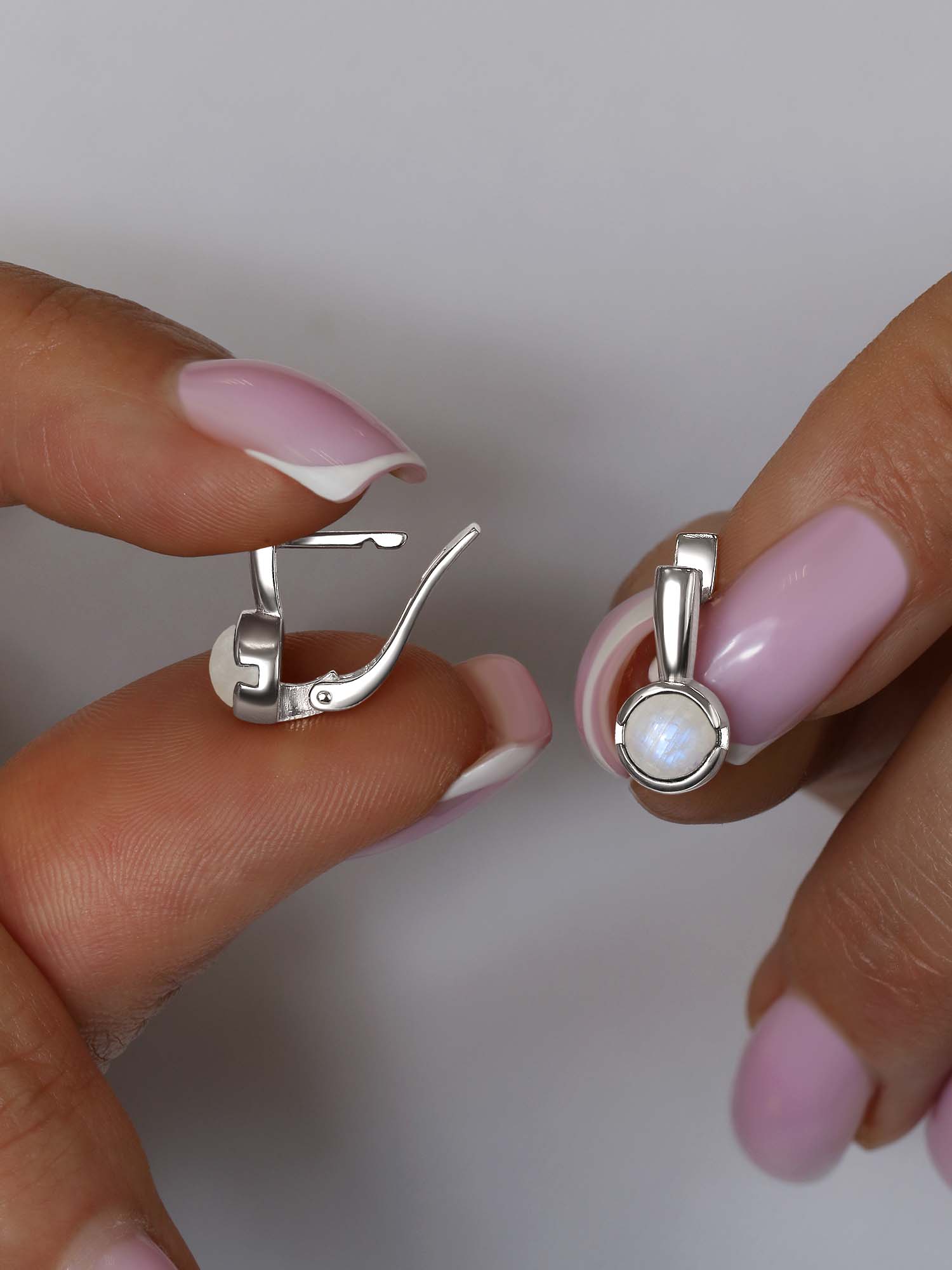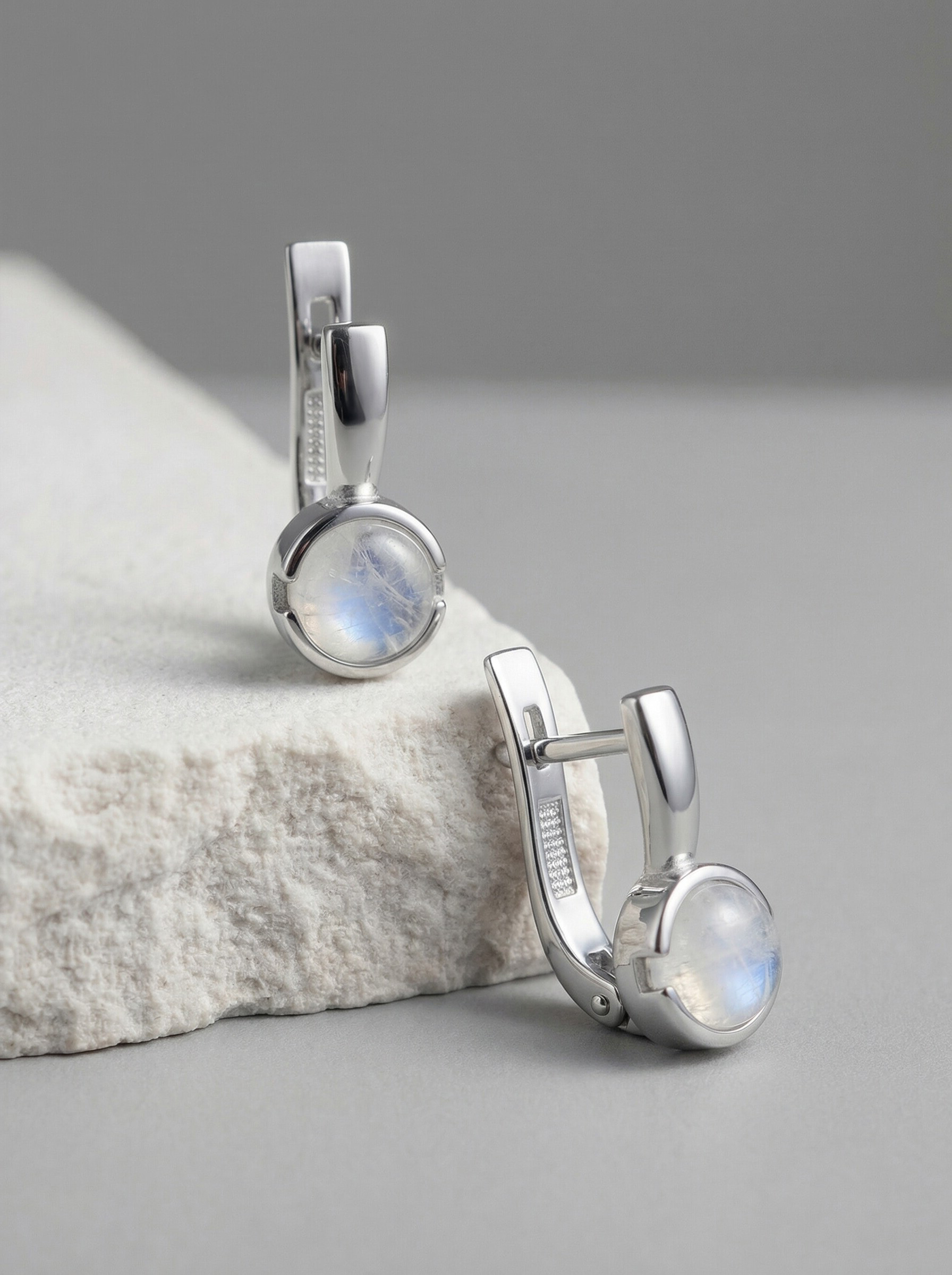 Серьги из серебра с лунным камнем родированные