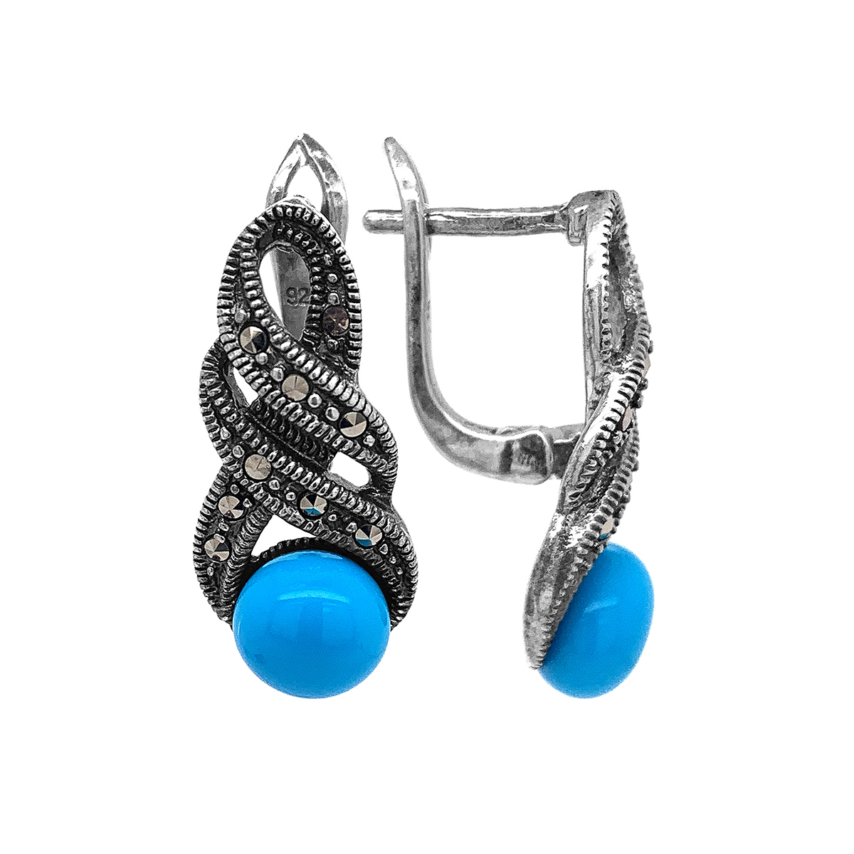 Серьги из серебра с марказитами и бирюзой родированные сс-1503041м