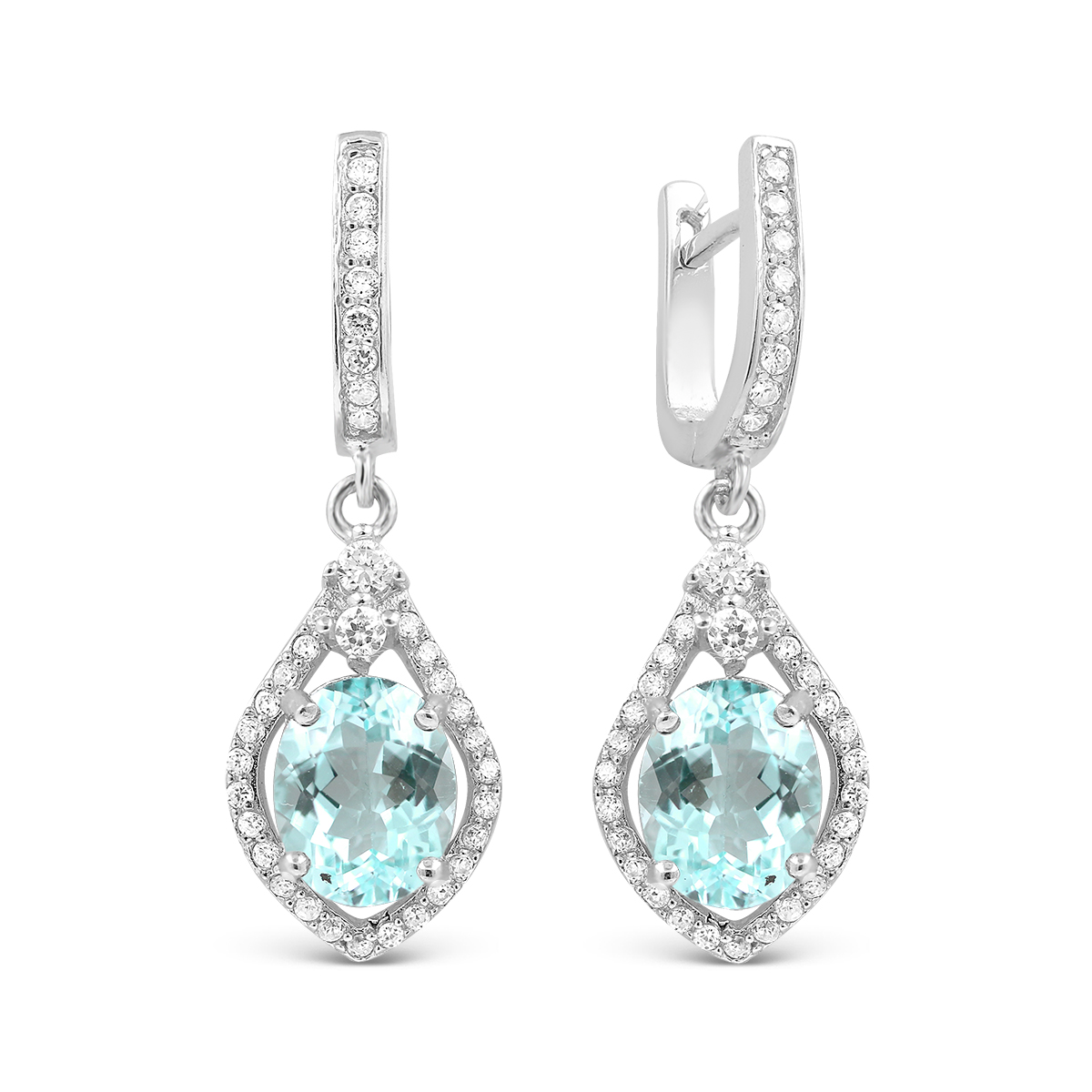 Серьги из серебра с нат. топазом и фианитами родированные