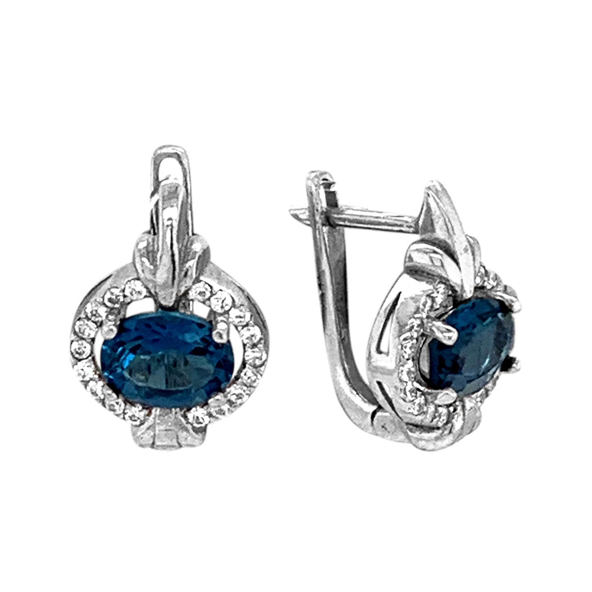 Серьги из серебра с нат.лондон топазом и фианитами родированные исп-00744