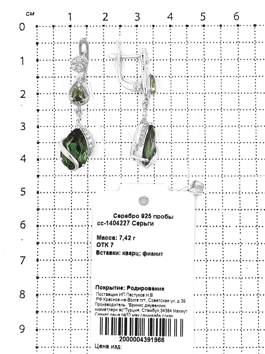 Серьги из серебра с нат.празиолитом и фианитами родированные