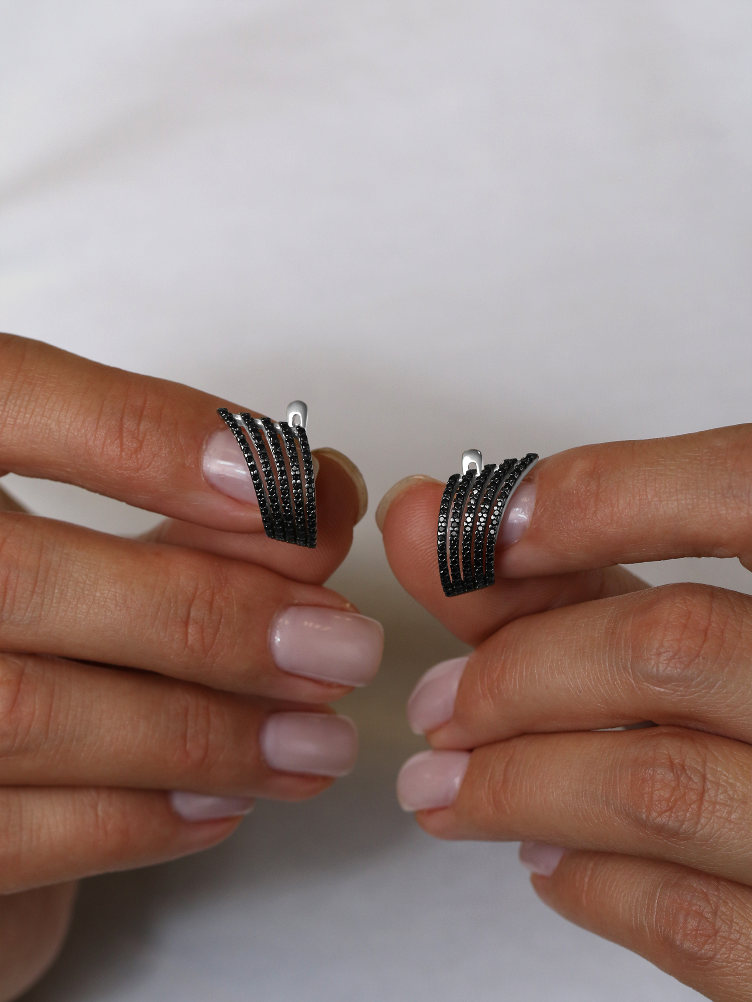 Серьги из серебра с натуральной шпинелью родированные 925 пробы С-7618р416