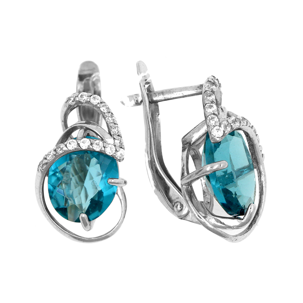 Серьги из серебра с пл.кварцем цв.лондон-топаз и фианитами родированные