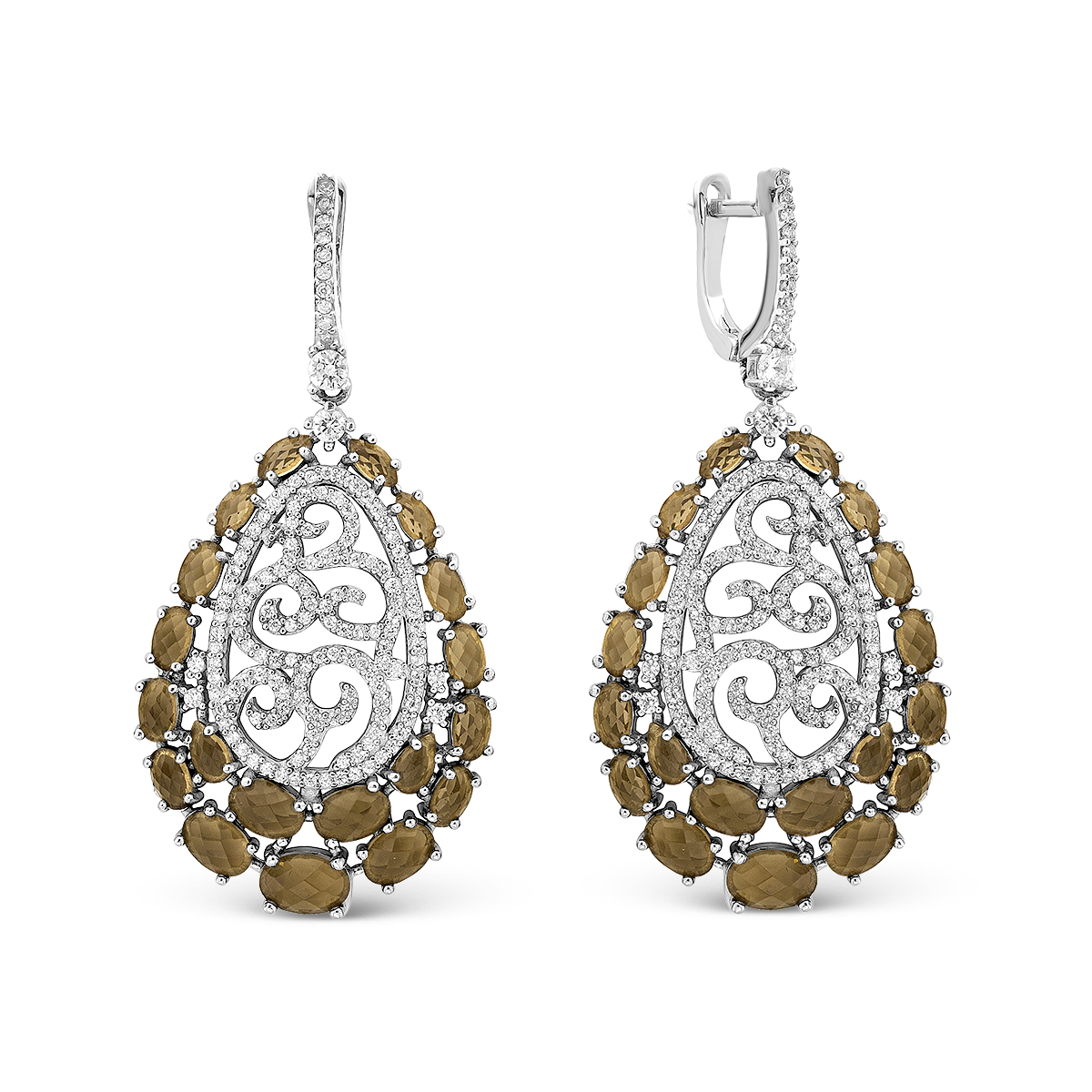 Серьги из серебра с пл.кварцем цв.раухтопаз и фианитами родированные мс-149023р107