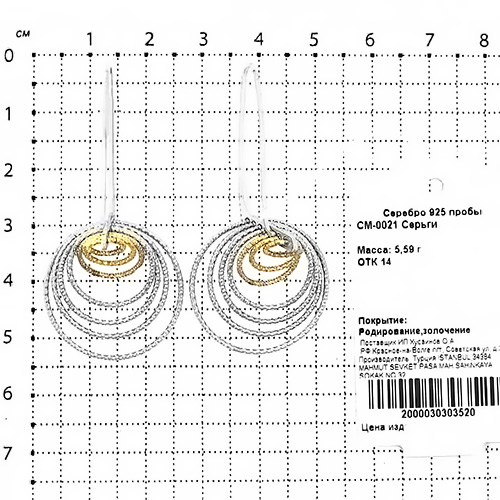 Серьги из серебра с родированием и золочением - Круги СМ-0021