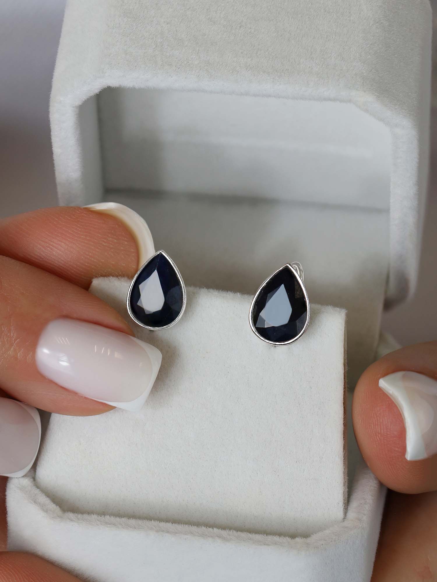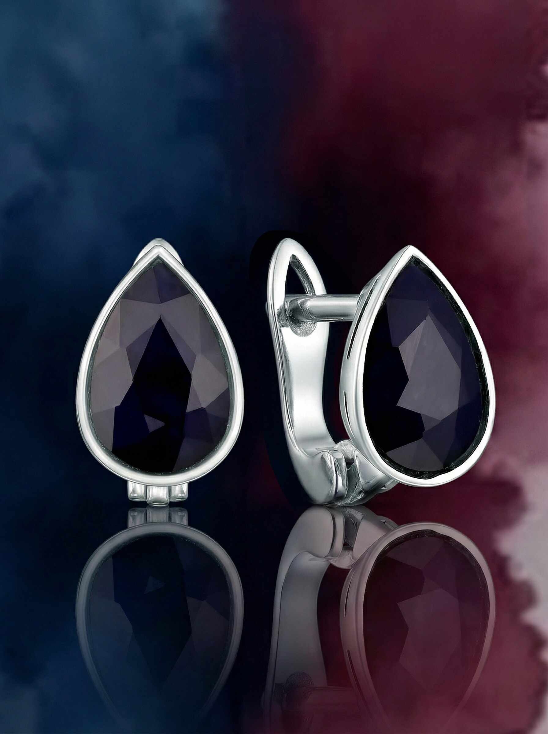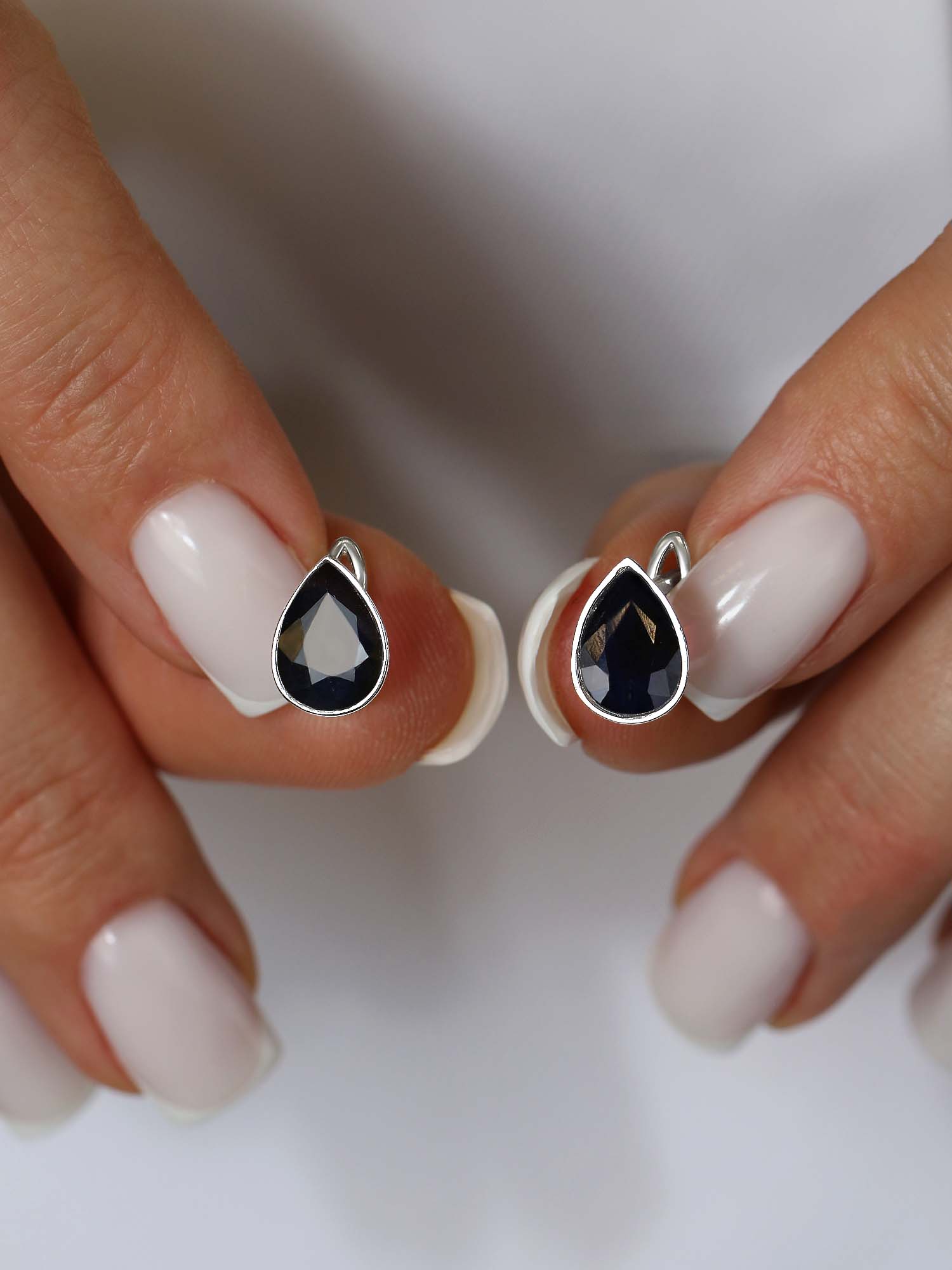 Серьги из серебра с сапфиром родированные 925 пробы HE1031-SS-LK