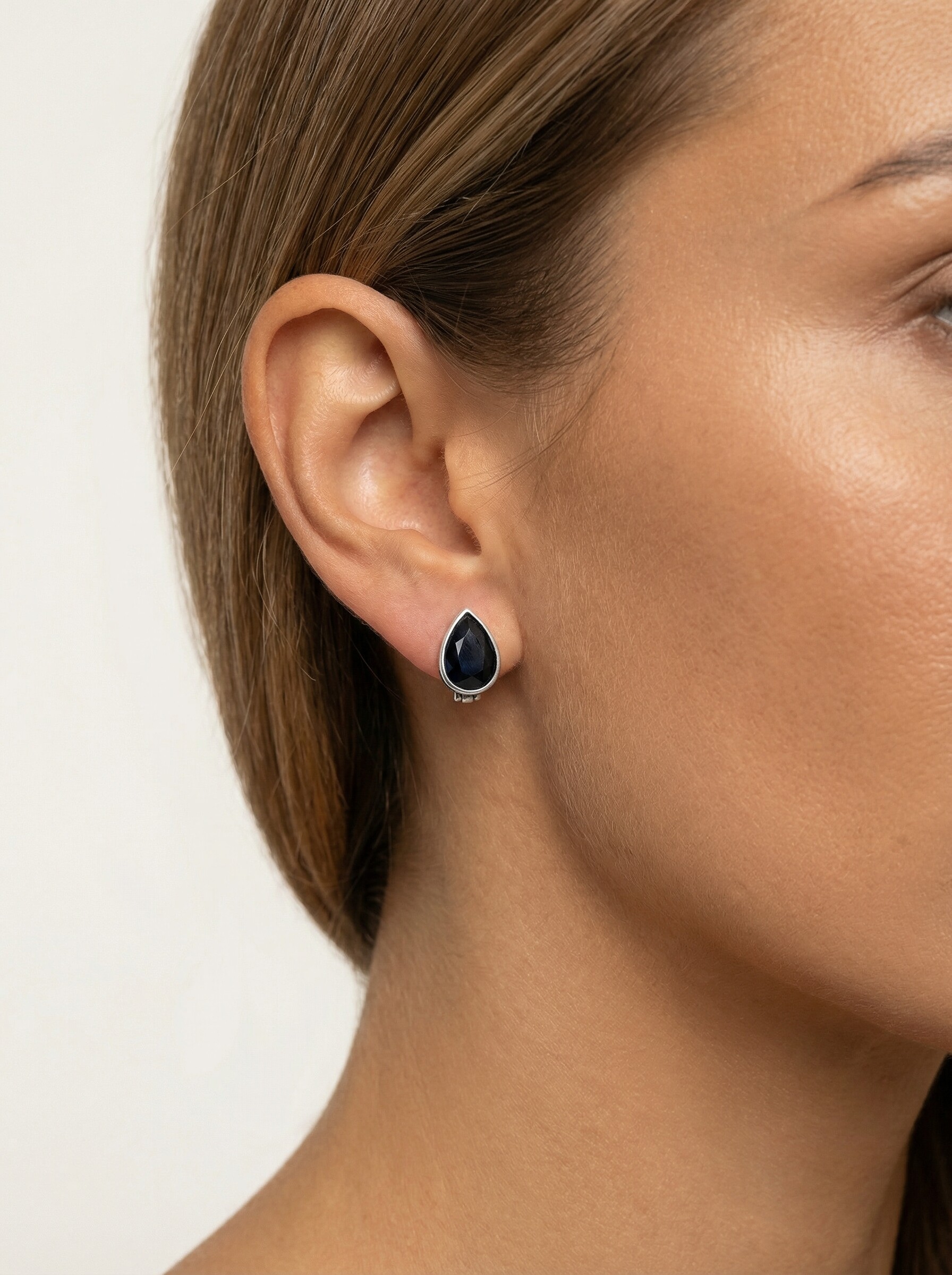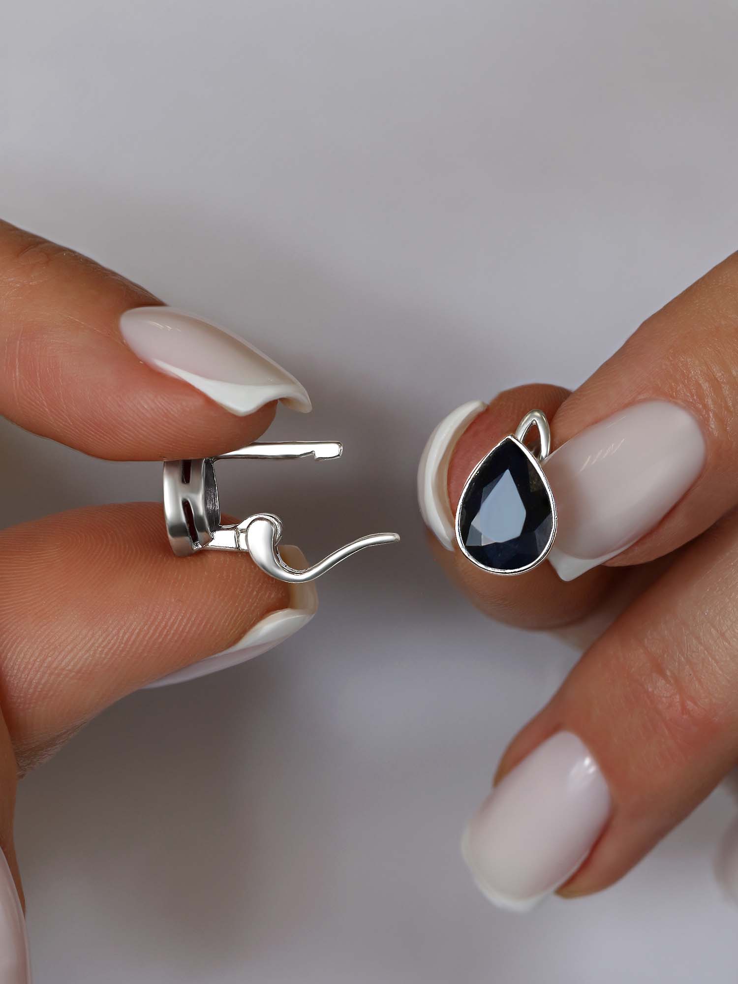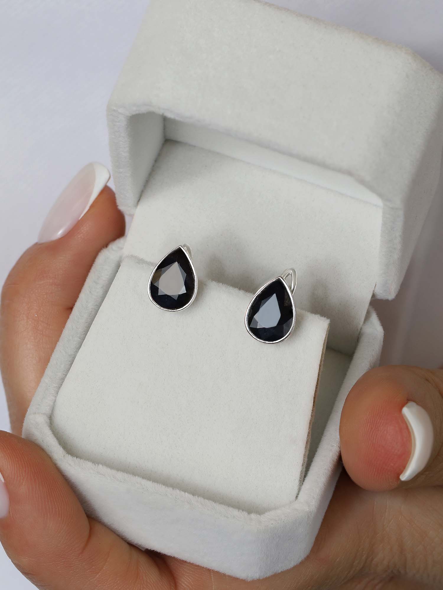 Серьги из серебра с сапфиром родированные 925 пробы HE1031-SS-LK