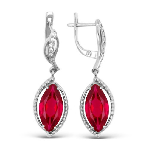 Серьги из серебра с синт.рубином и фианитами родированные