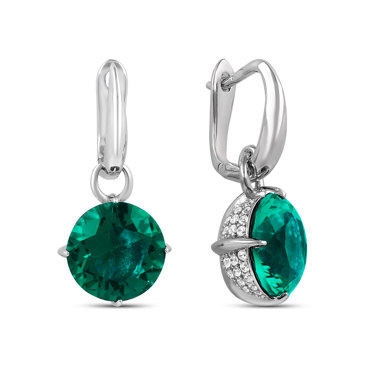 Серьги из серебра с ситалл изумрудом и фианитами родированные