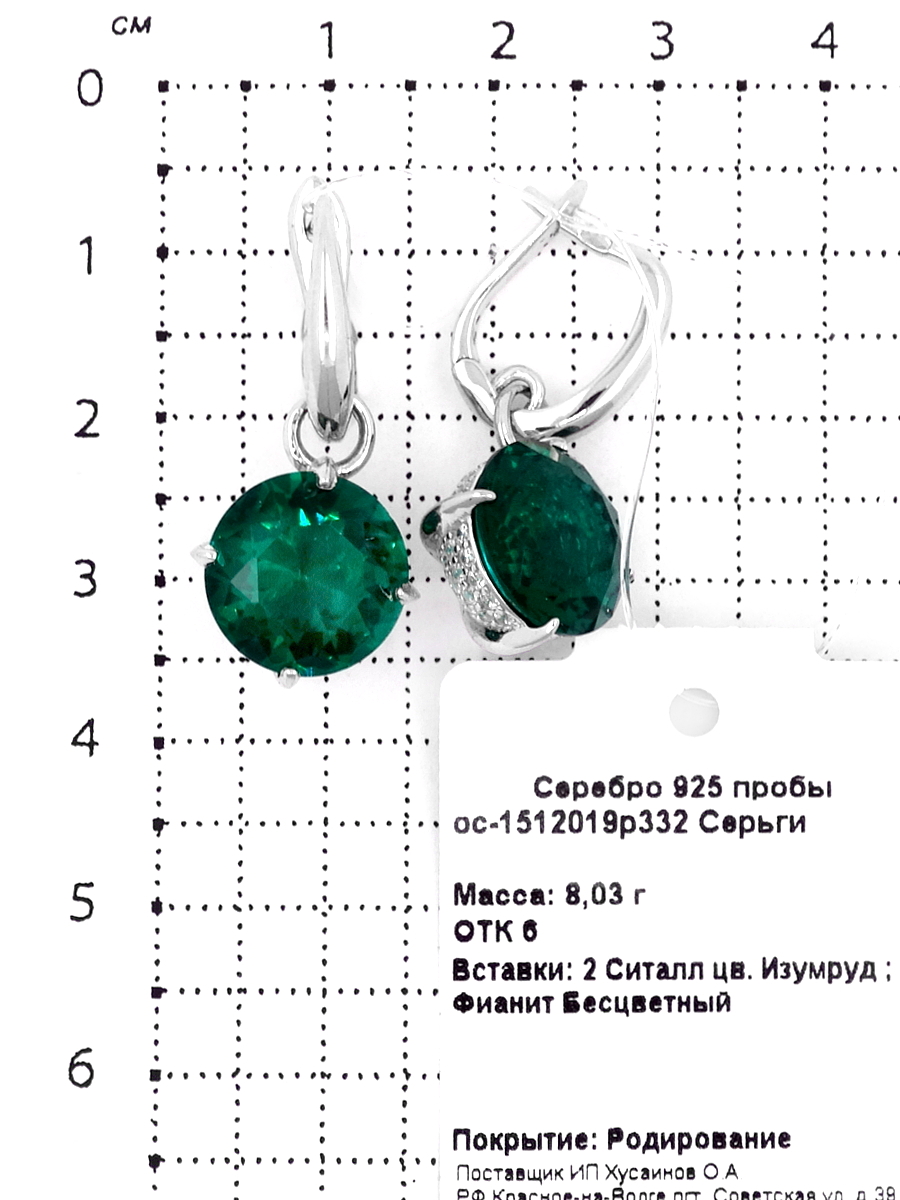 Серьги из серебра с ситалл изумрудом и фианитами родированные ос-1512019р332