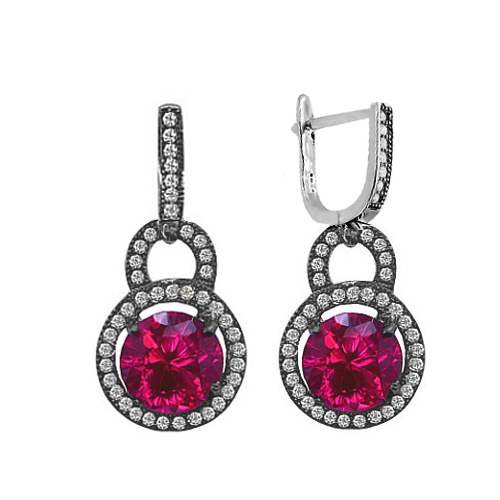 Серьги из серебра с ситаллом цв. рубин и фианитами родированные ас-1311052
