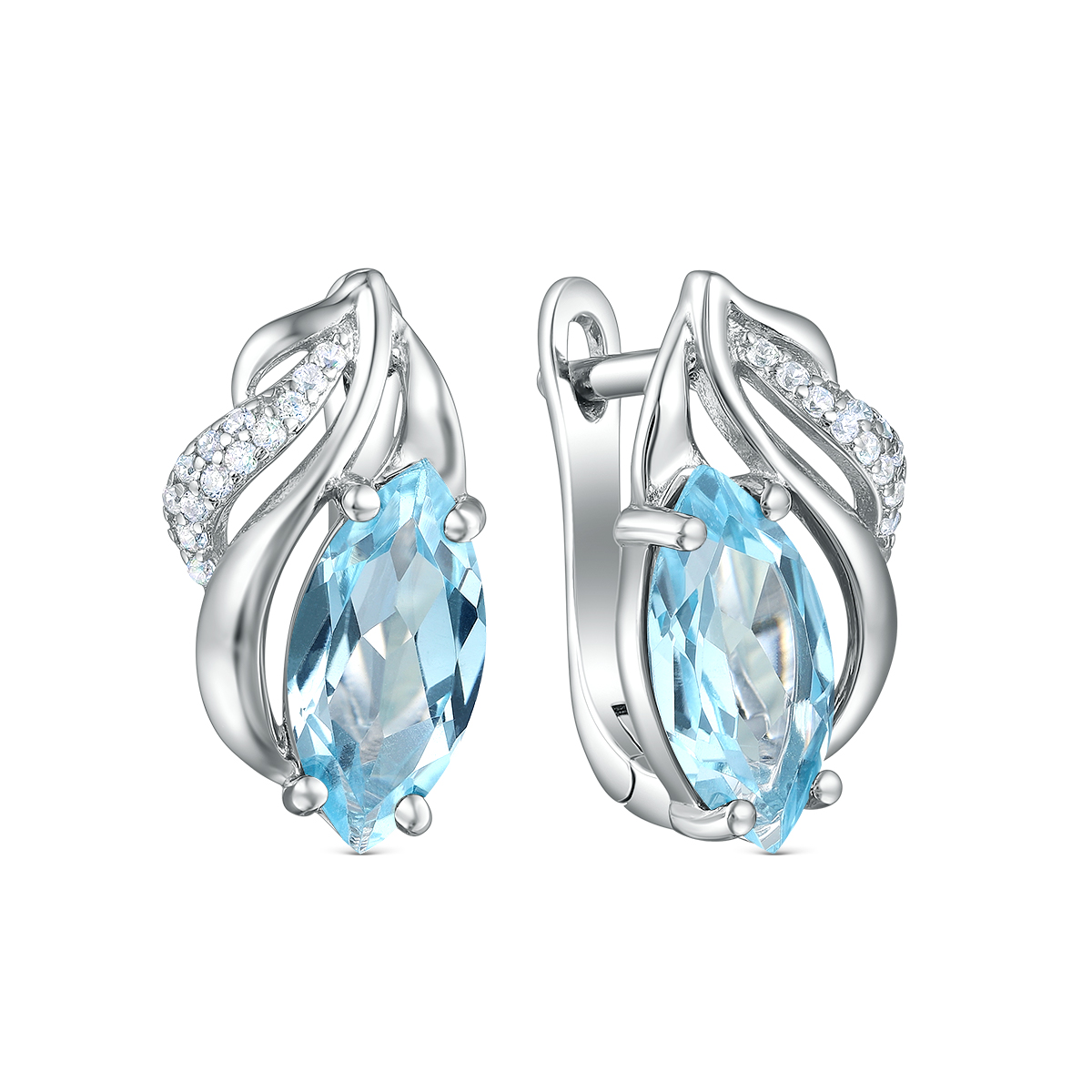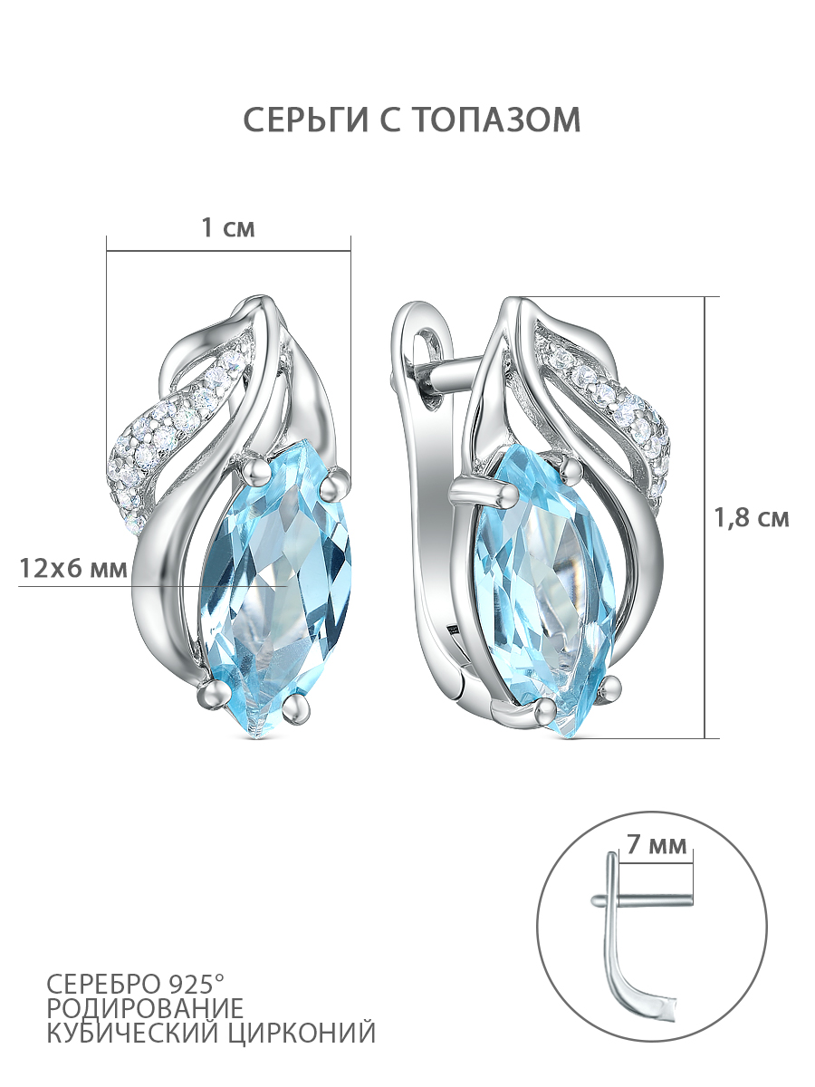 Серьги из серебра с топазом и кубическим цирконием родированные