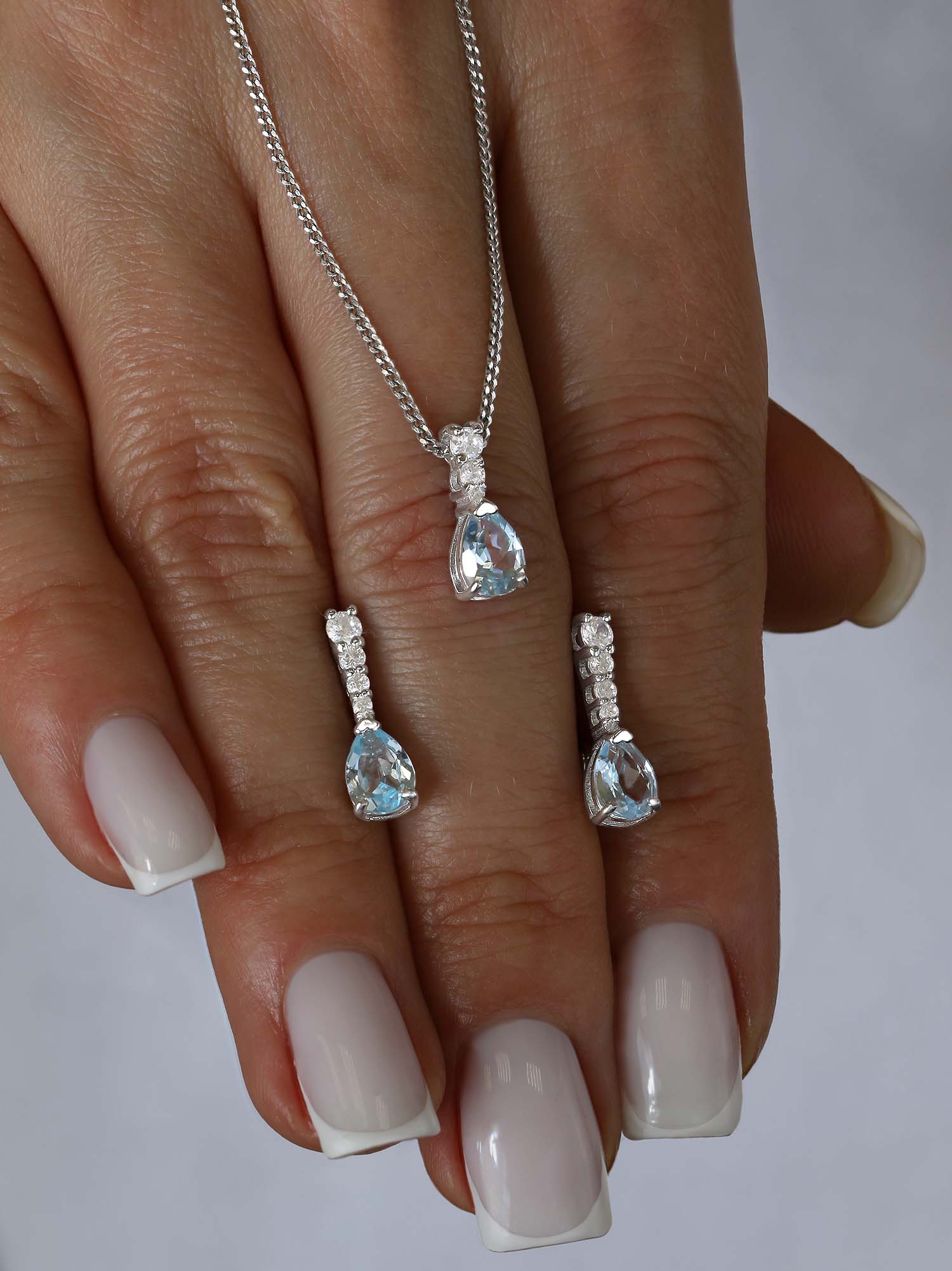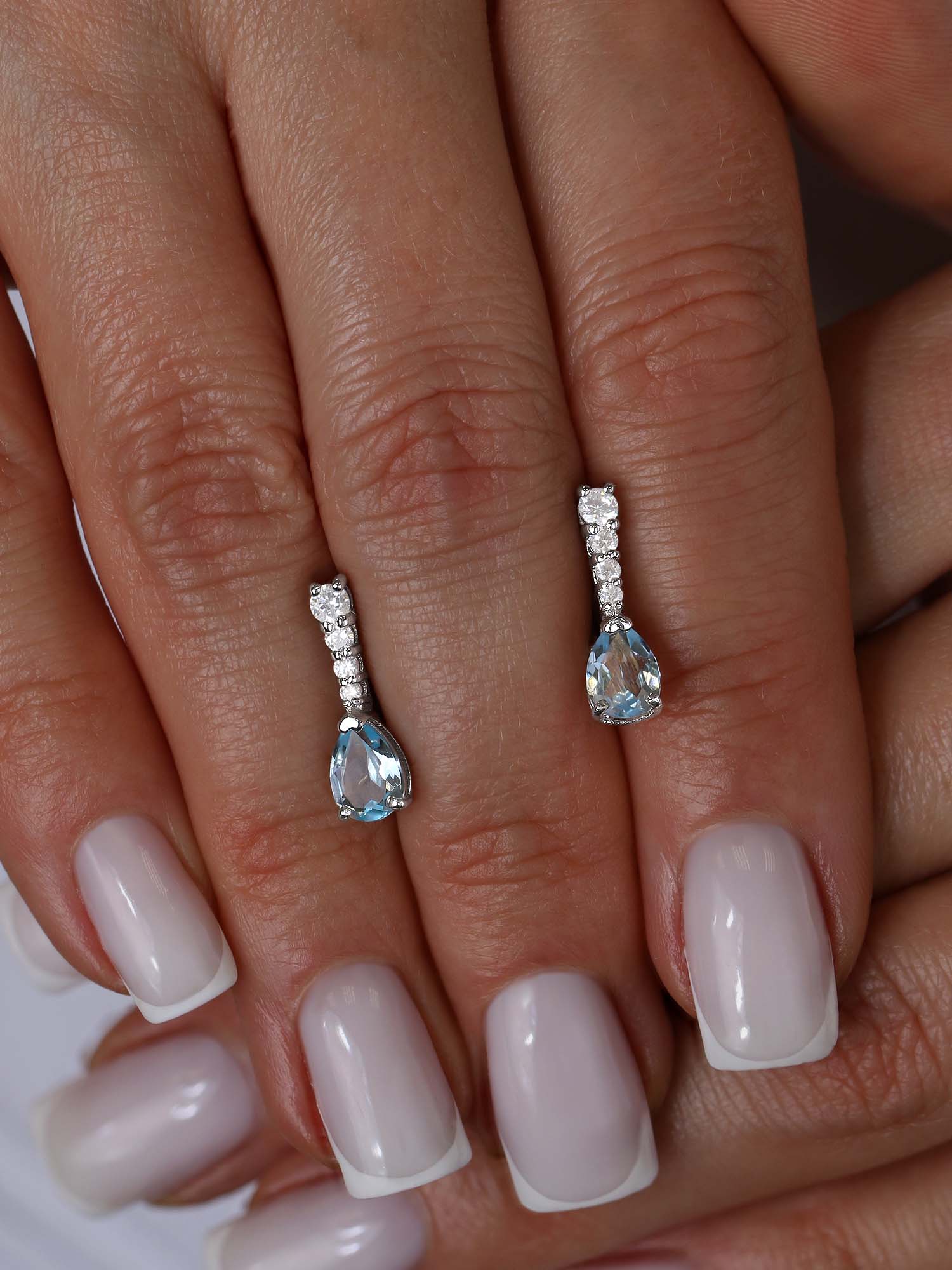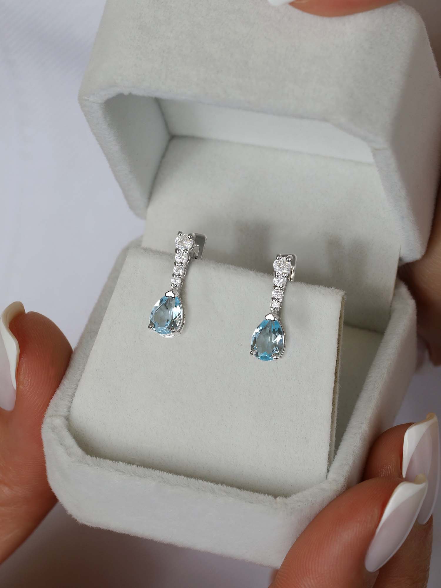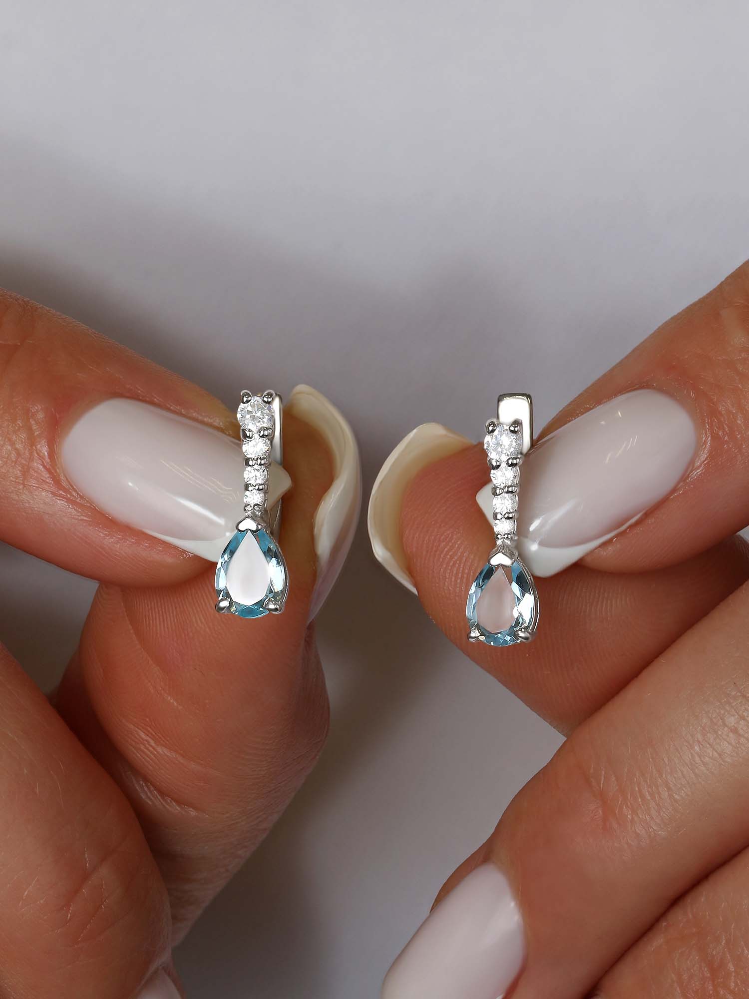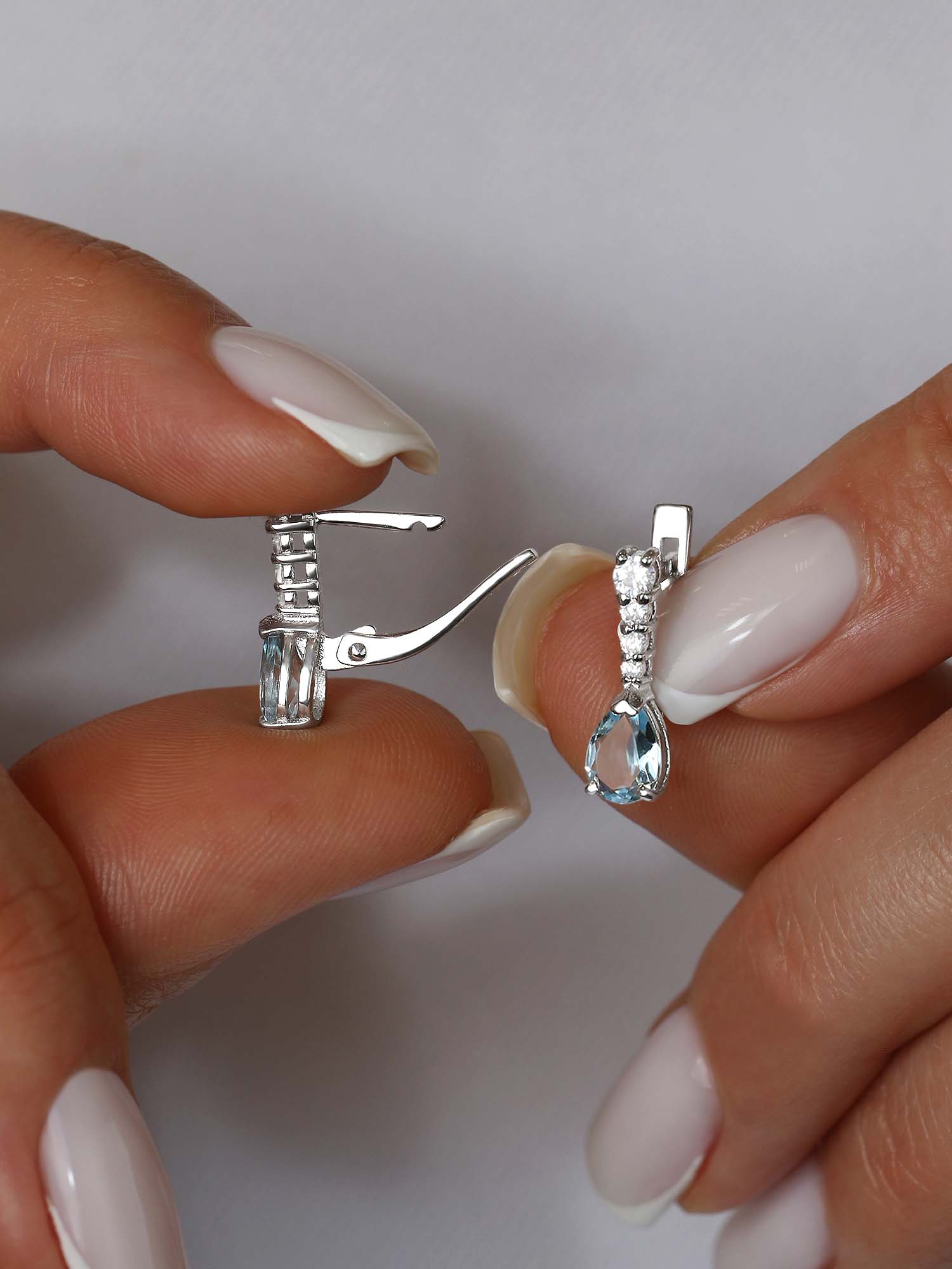 Серьги из серебра с топазом Sky и фианитами родированные 925 пробы 2-616р403