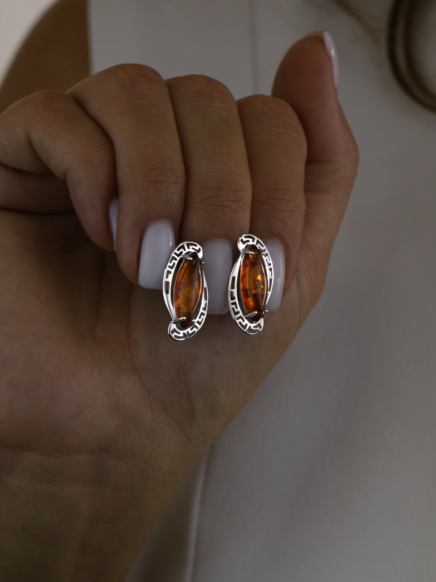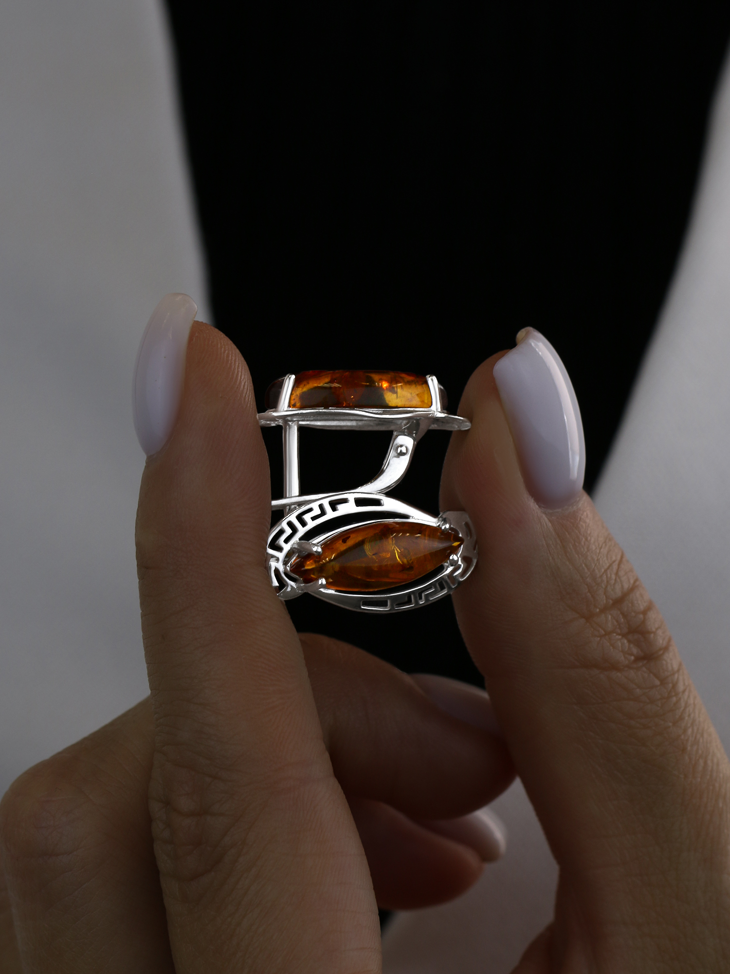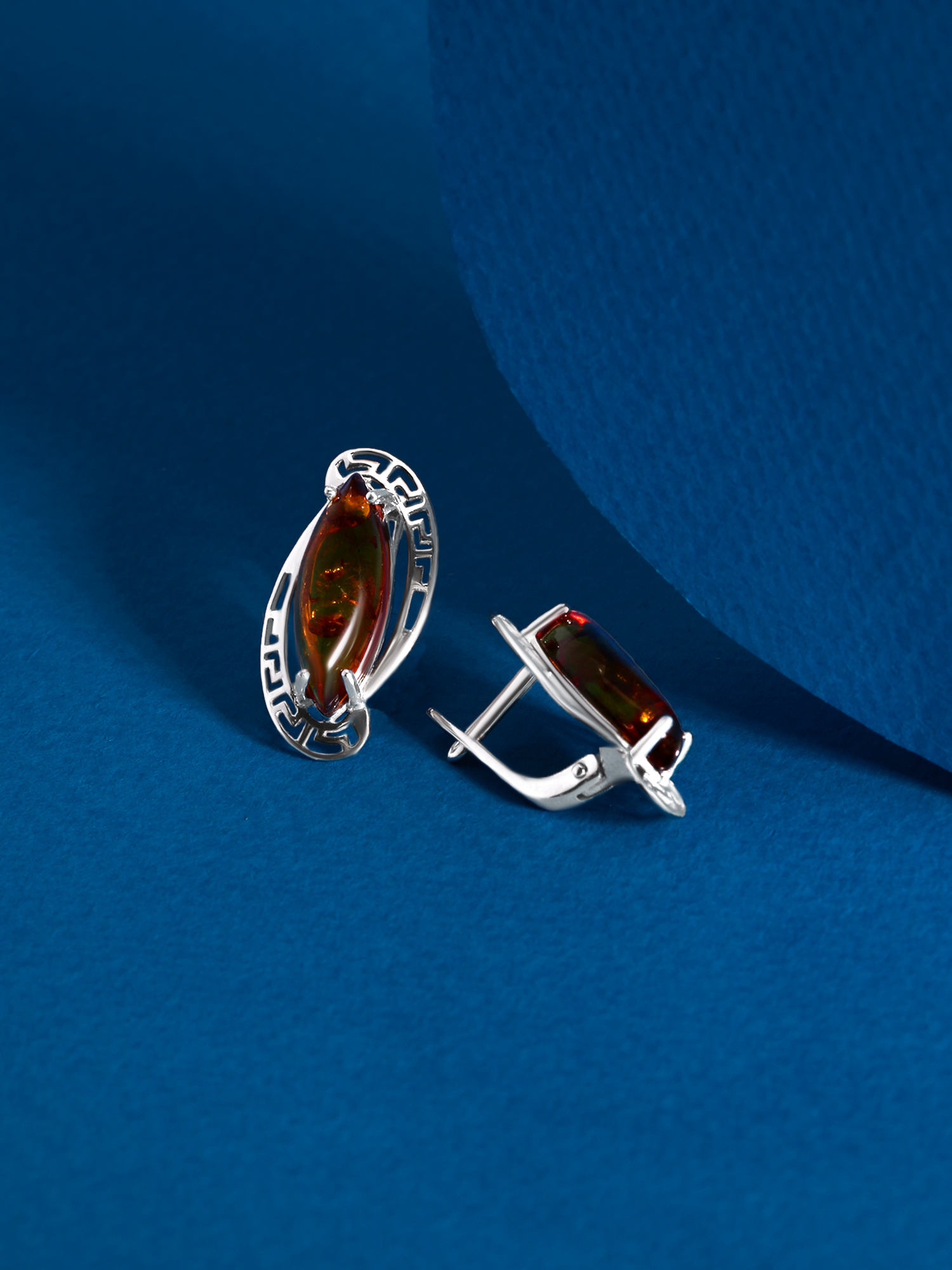 Серьги из серебра с прессованным янтарём родированные СП6р640