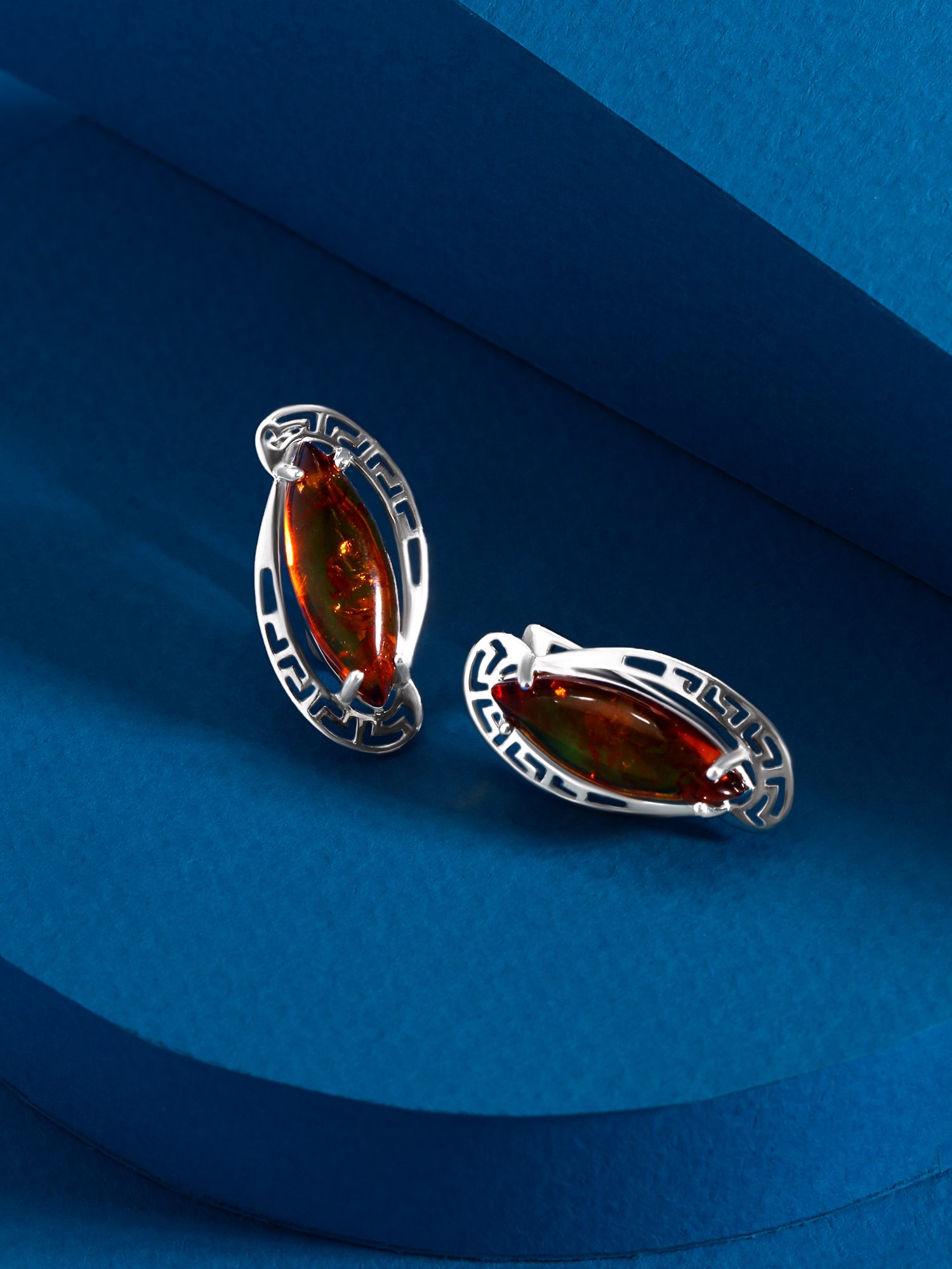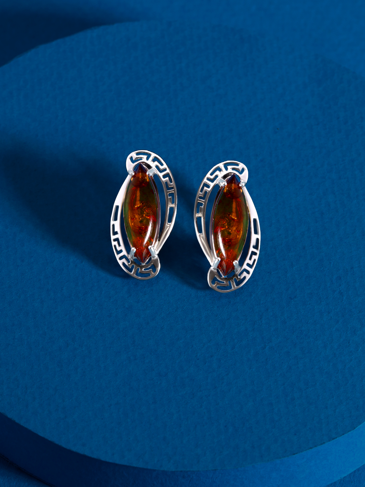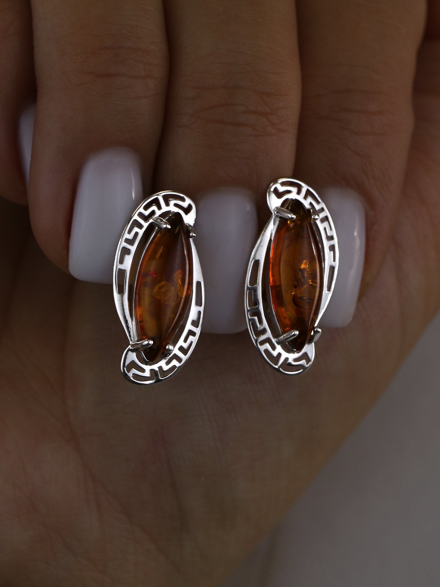 Серьги из серебра с прессованным янтарём родированные СП6р640