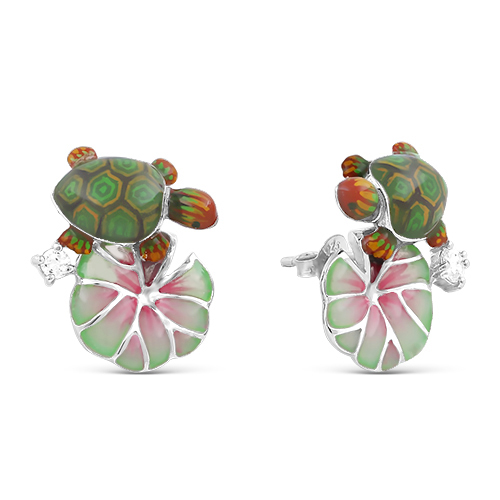 Серьги из серебра с эмалью и куб. цирконием родированные SE2680-E
