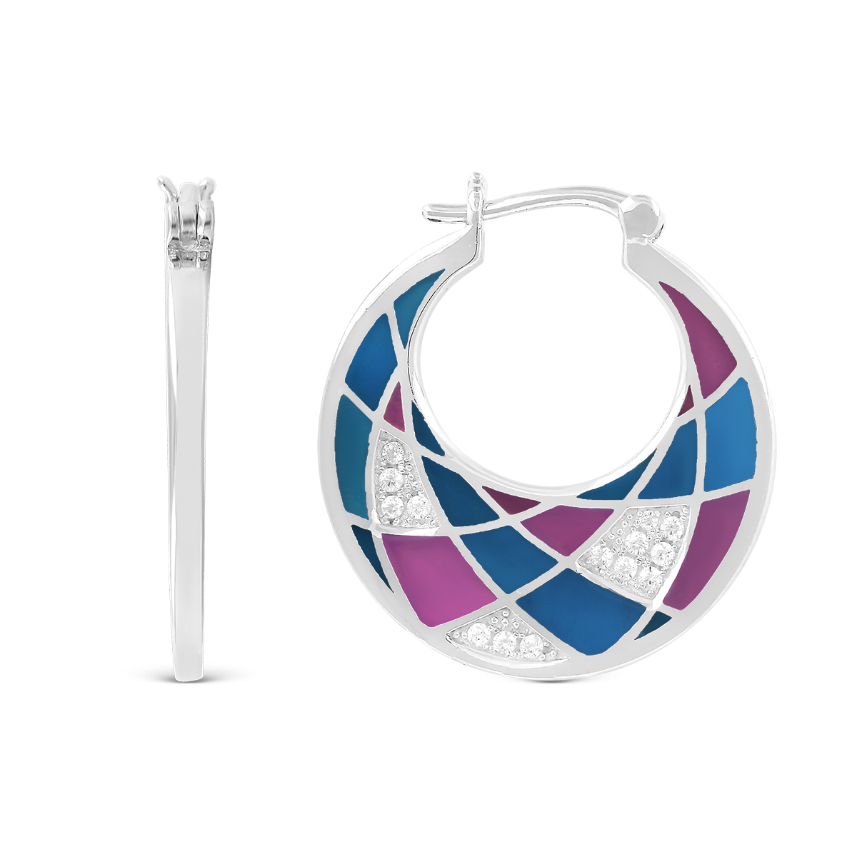Серьги из серебра с эмалью и куб.цирконием родированные