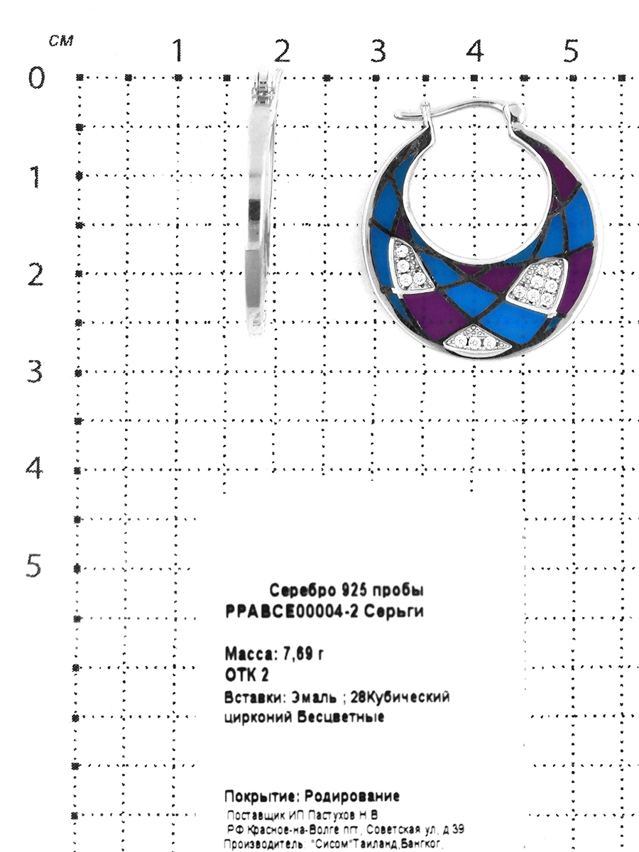 Серьги из серебра с эмалью и куб.цирконием родированные PPABCE00004-2