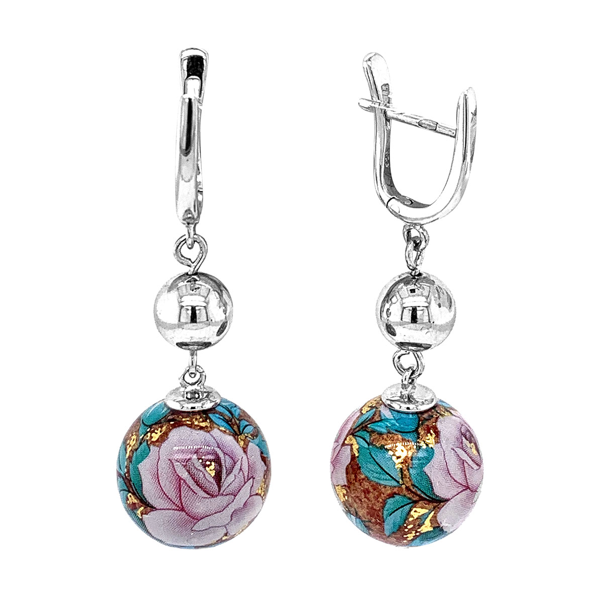 Серьги из серебра с эмалью родированные