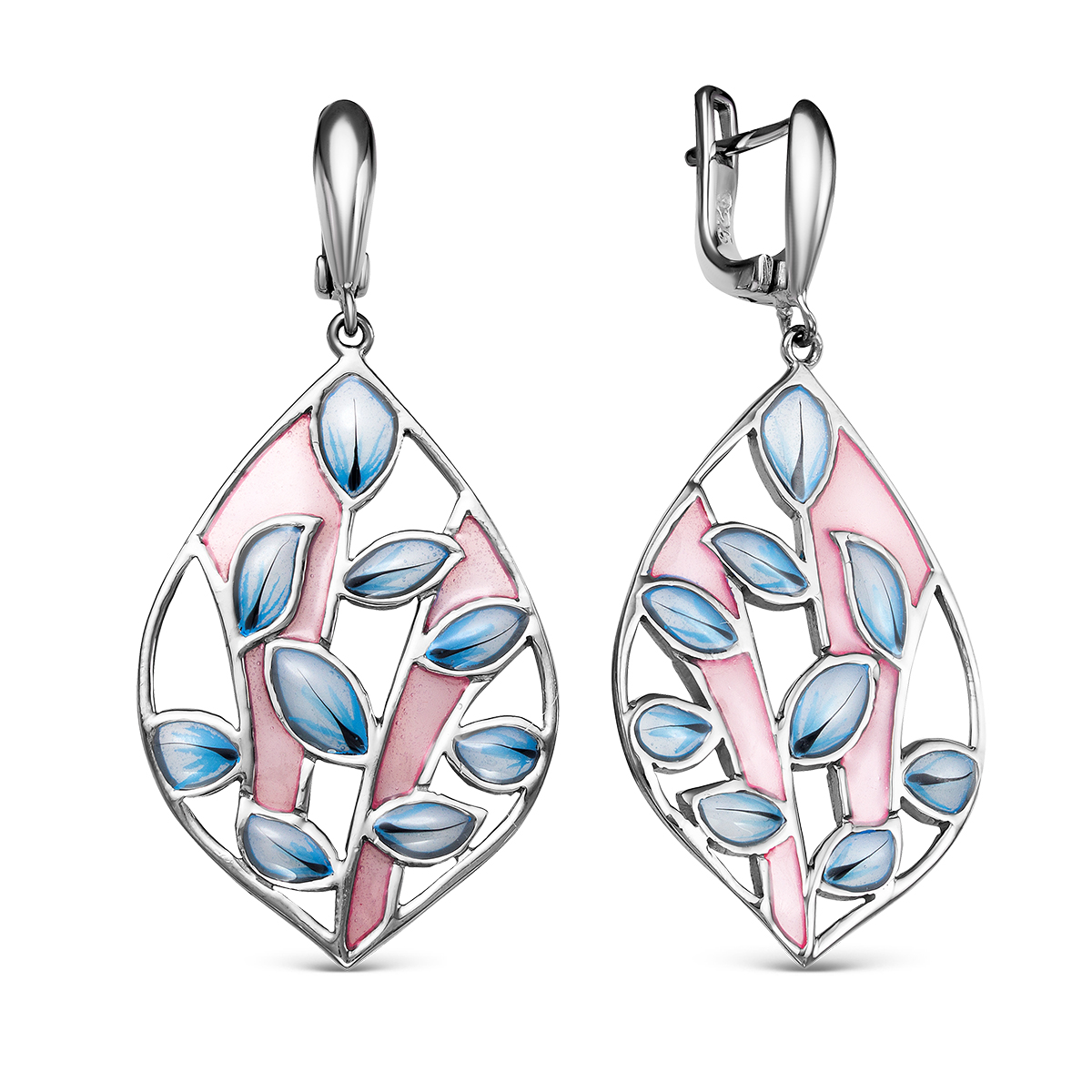 Серьги из серебра с эмалью родированные
